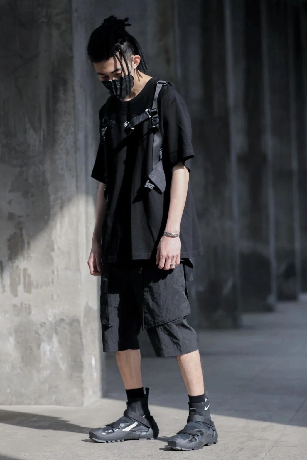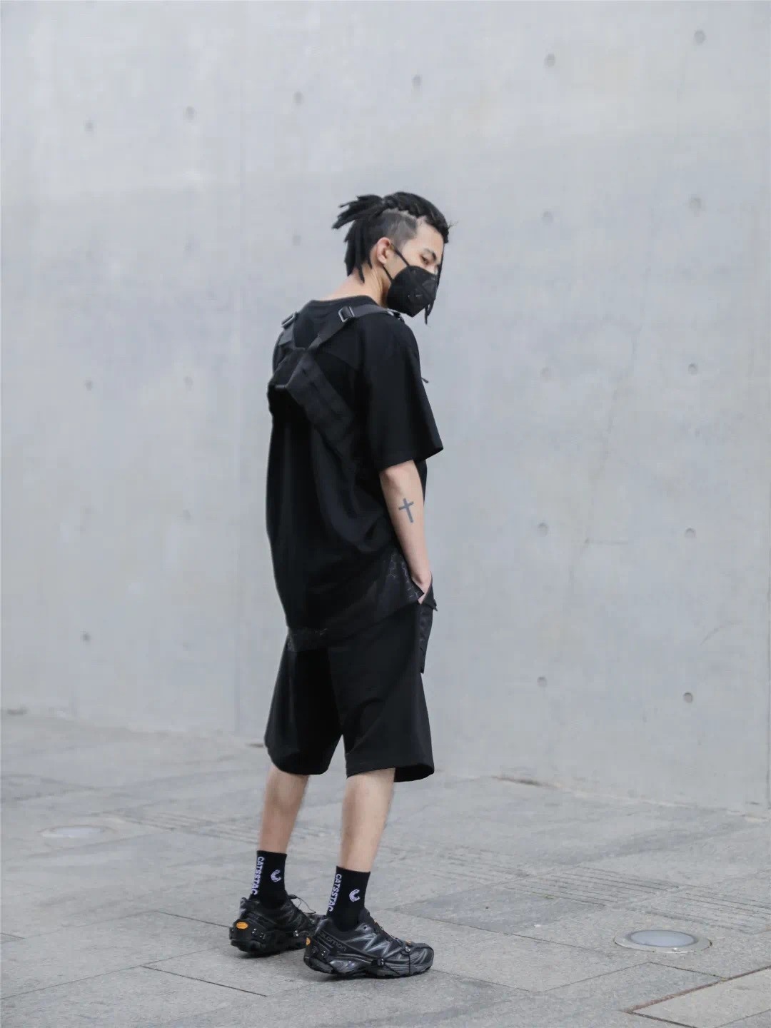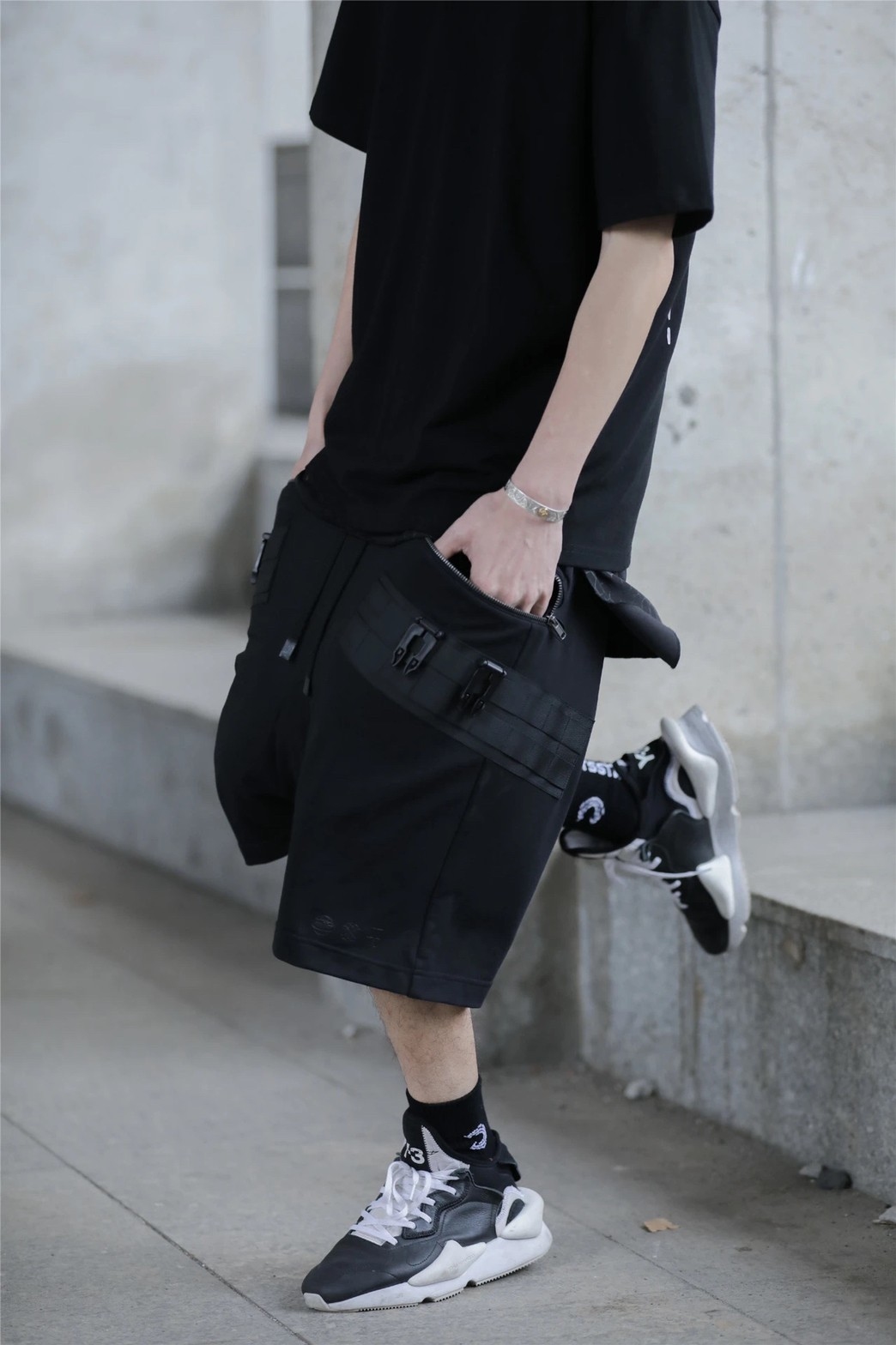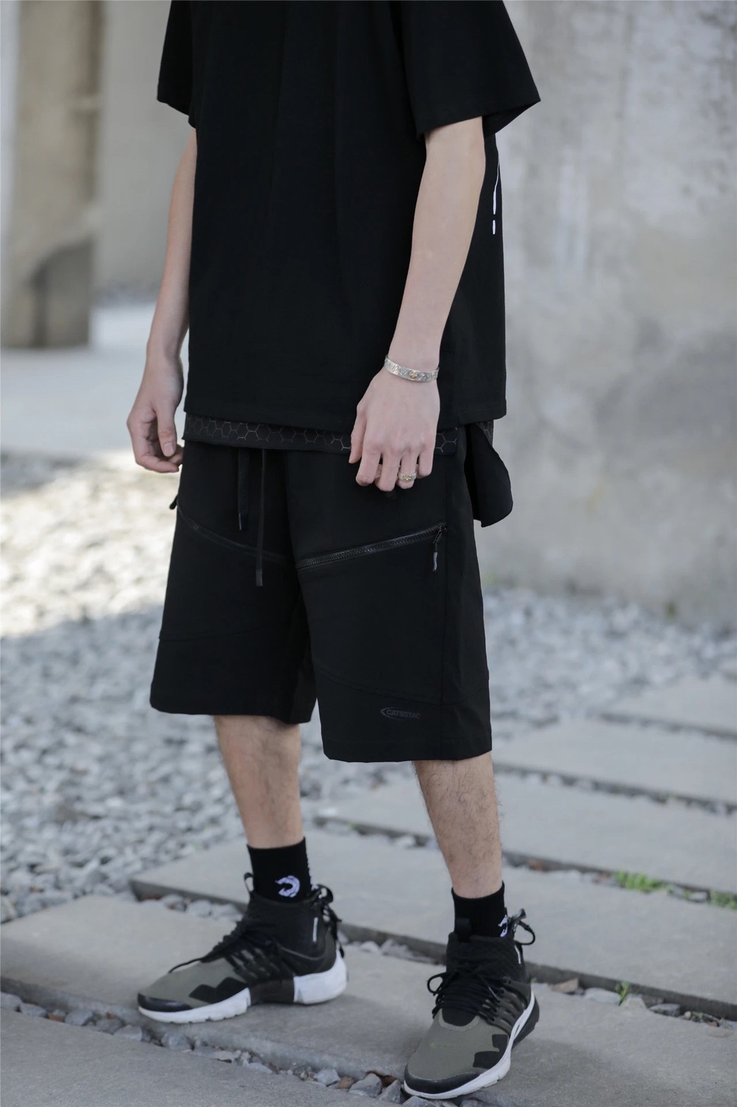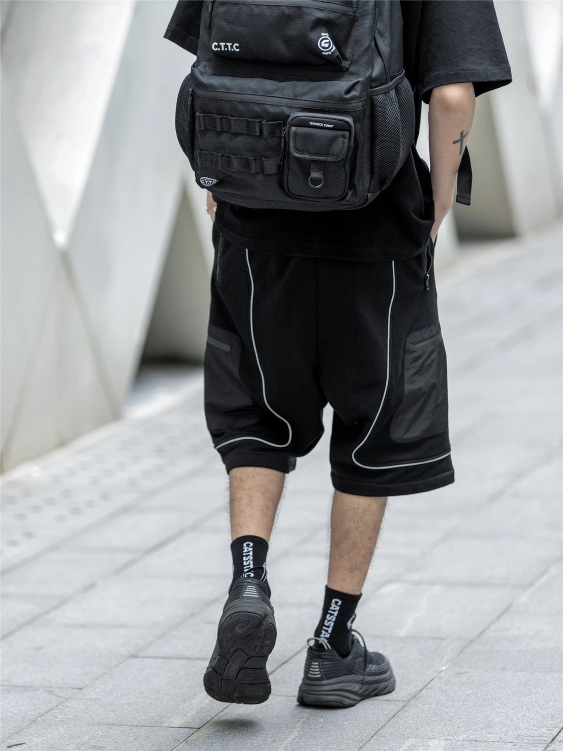 雙MOLLE機能黑色五分褲