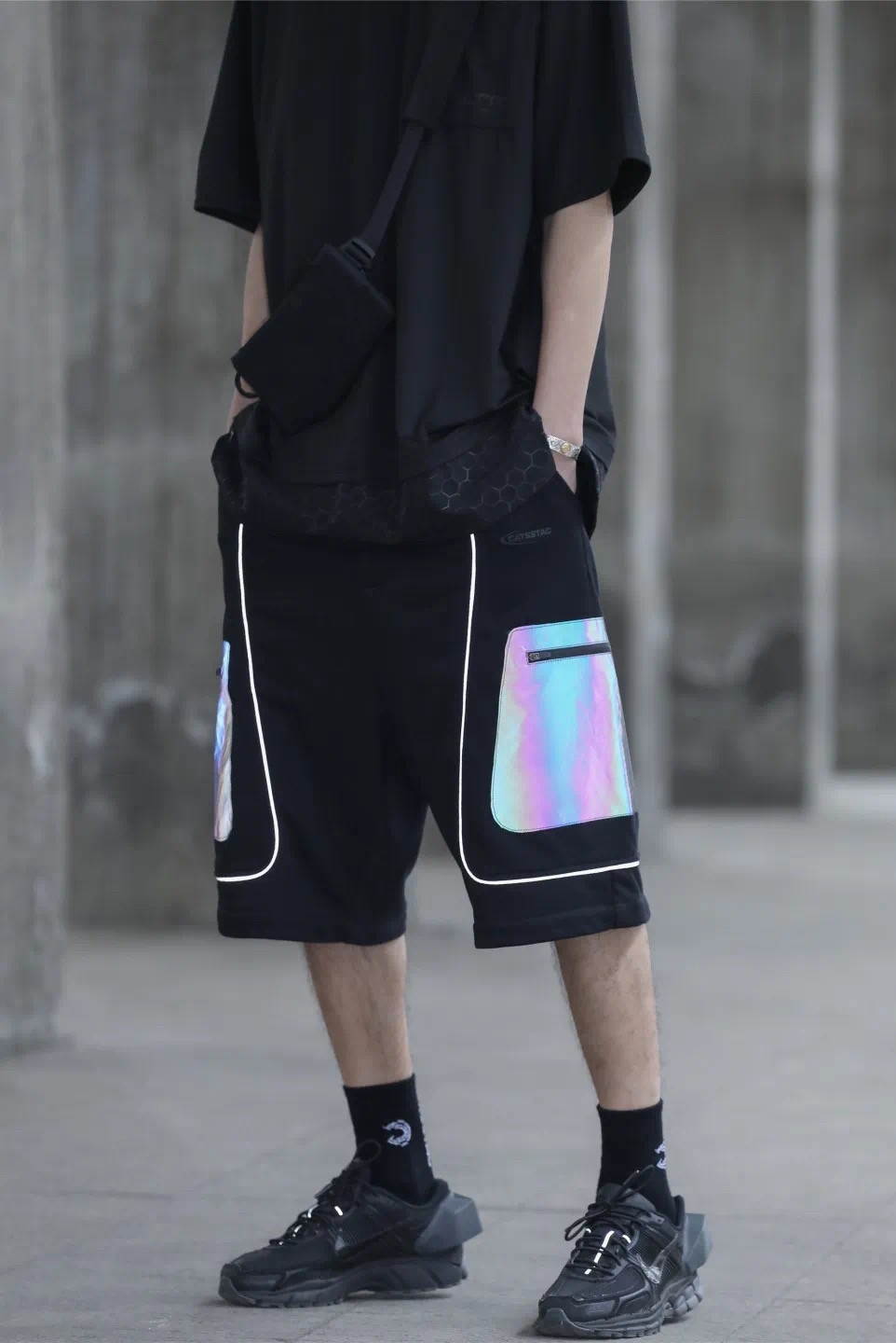 夏季鐳射反光機能口袋短褲