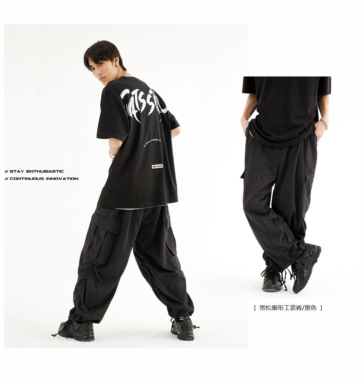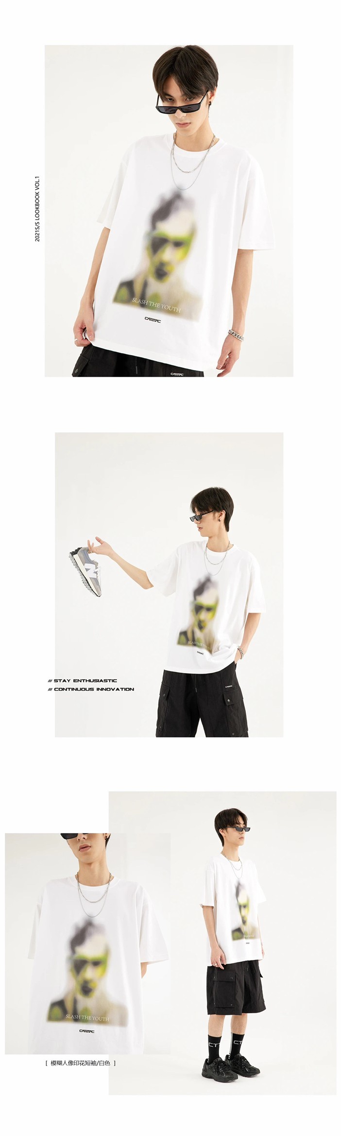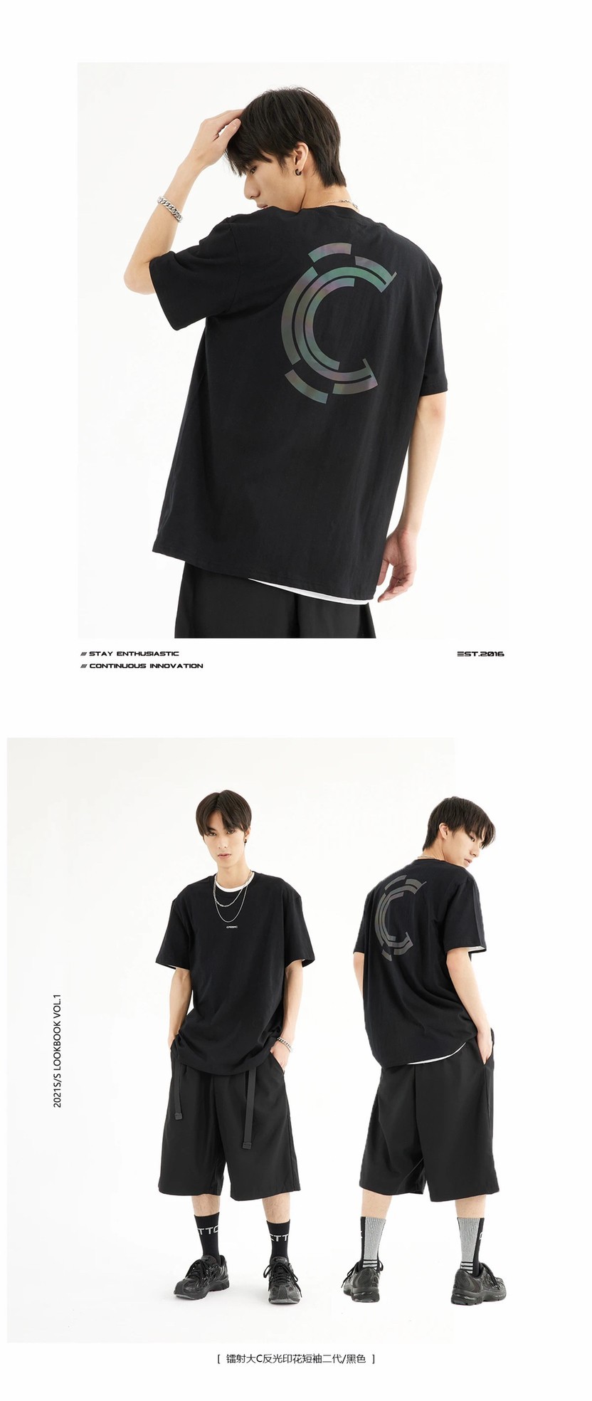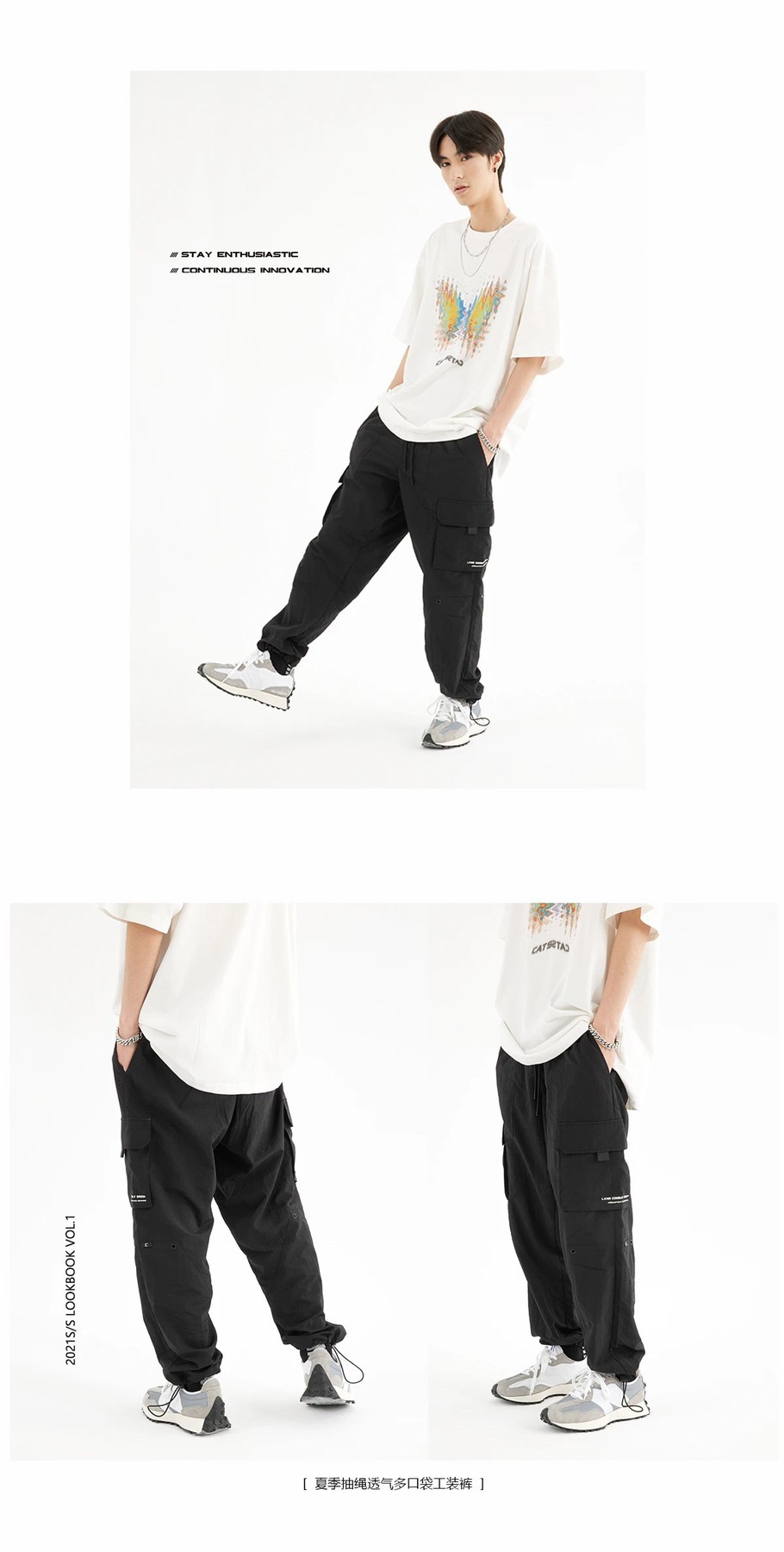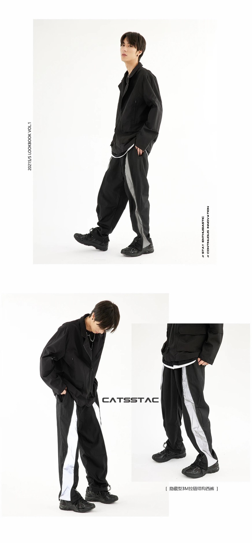 褲裝上推出3反光面料拼接西褲,以及適合春夏穿著的束腳褲,