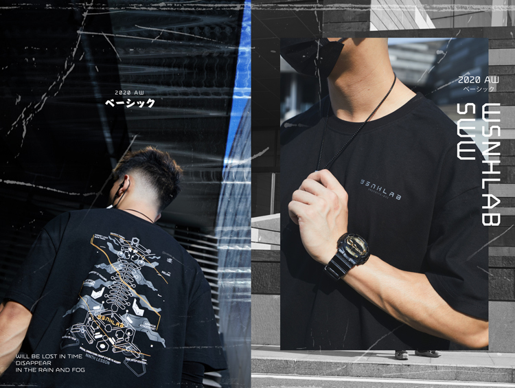 介紹了三款不同的褲款之後,最後迎來2020春夏的最新款短袖T-Shirt。採用高質量純棉面料,在前幅印有WSNHLAB的品牌LOGO,背後使用極具未來感的機械線條圖案印花,彰顯城市忍者的暗黑態度。紮實的領口和寬鬆版型,無論是打底或疊穿都是不錯的選擇。