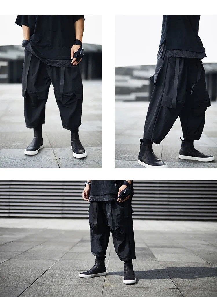 該款裙褲以日本武士道褲為靈感,以橫跨前後的布料剪裁設計,使廓形顯得出眾特別。同時也沿用多口袋的設計元素,方便日常的取物收納使用。腰間採用可調節卡扣設計,隨意調節適合自己的尺寸,為你的著用提供貼身體驗。