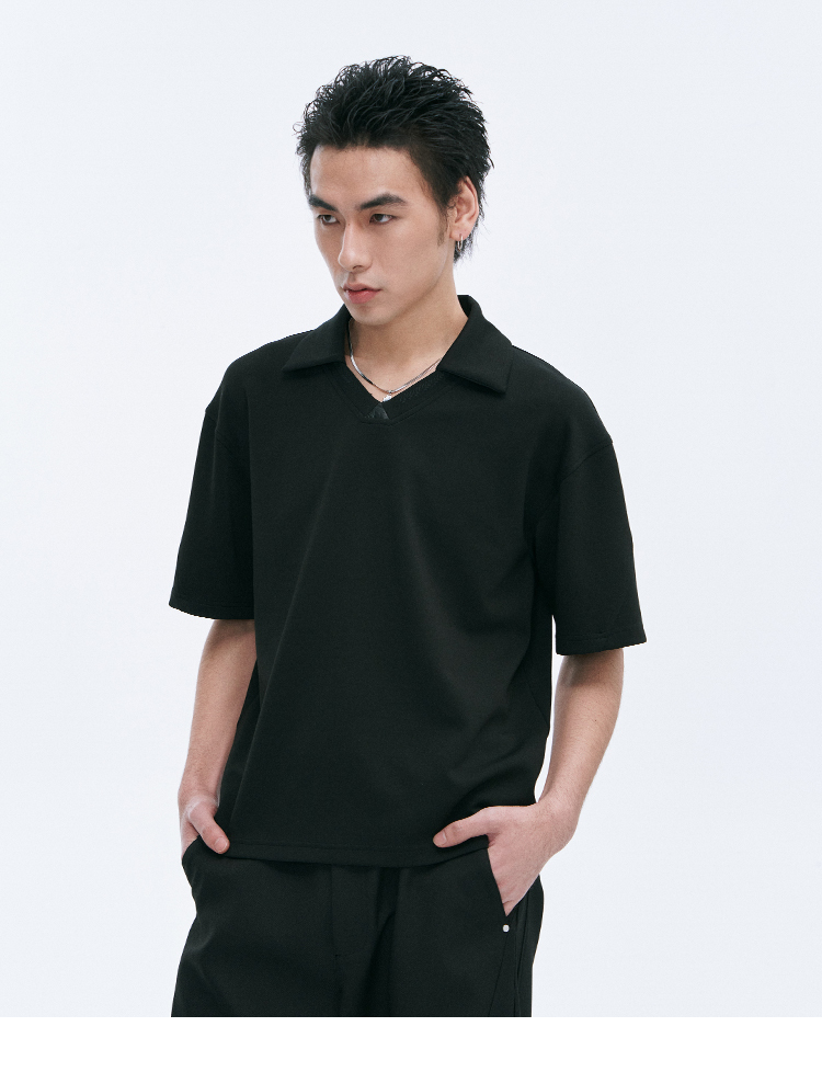 CATSSTAC 麥穗V領刺繡翻領短袖