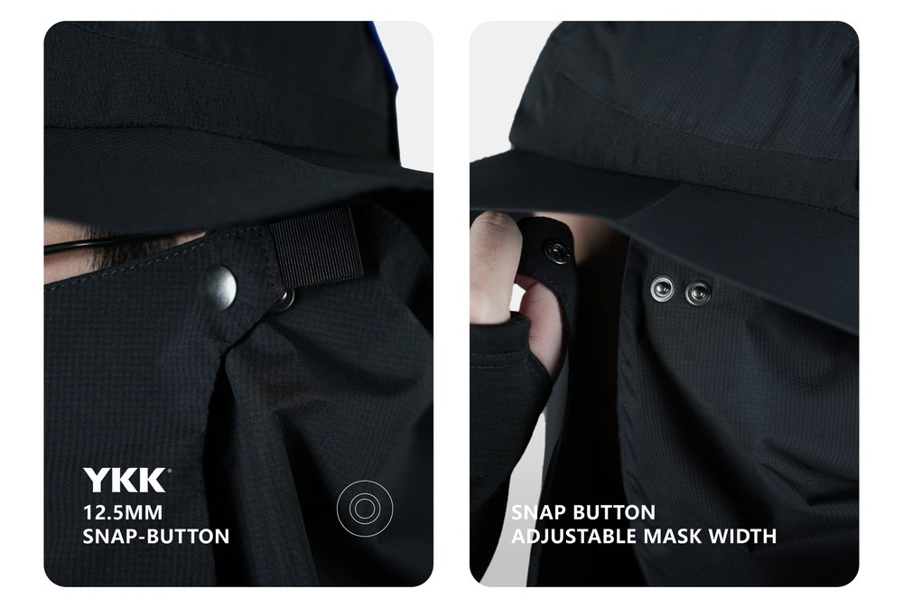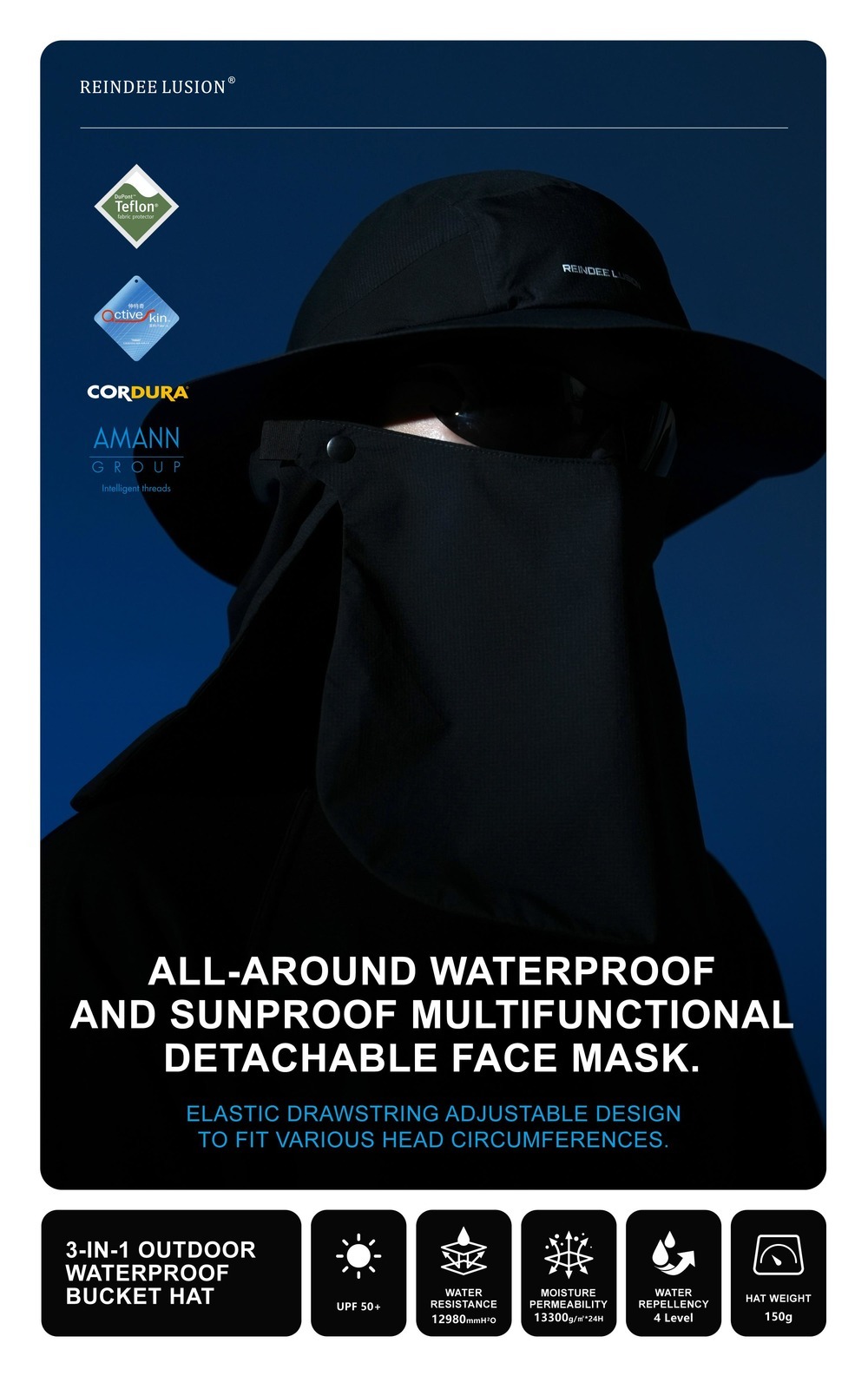 | All-around waterproof and sunproof, multifunctional detachable face mask.