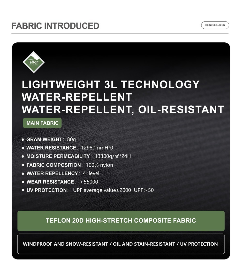 UPF 50+ Water Resistance: 12980mmH²0 Moisture Permeability: 13300g/㎡*24H Water Repellency : Level 4 Hat Weight: 150g | |||||||||