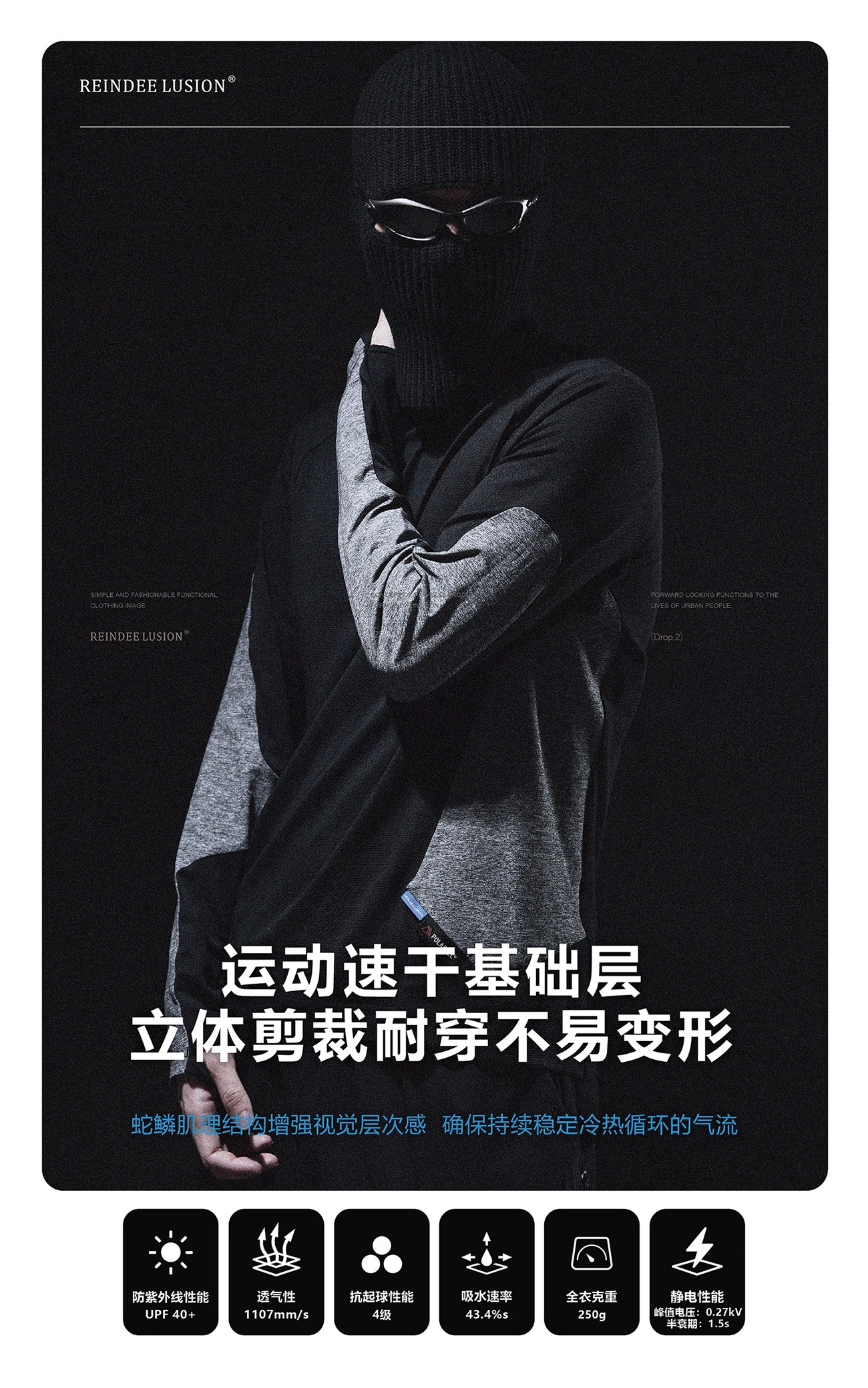 RL | REINDEE LUSION POLARTEC-Delta速乾蛇鱗紋圓領套指長袖T卹