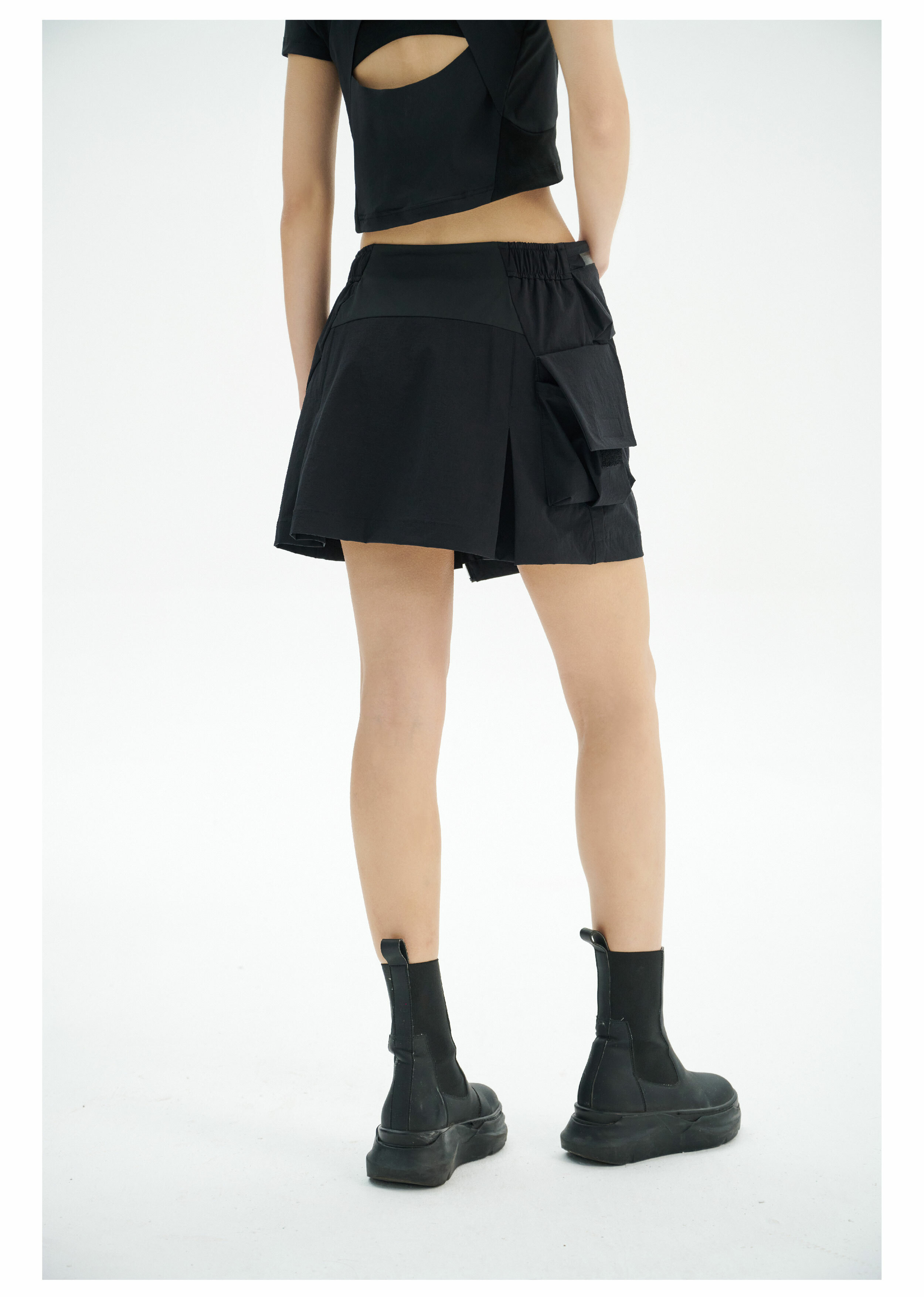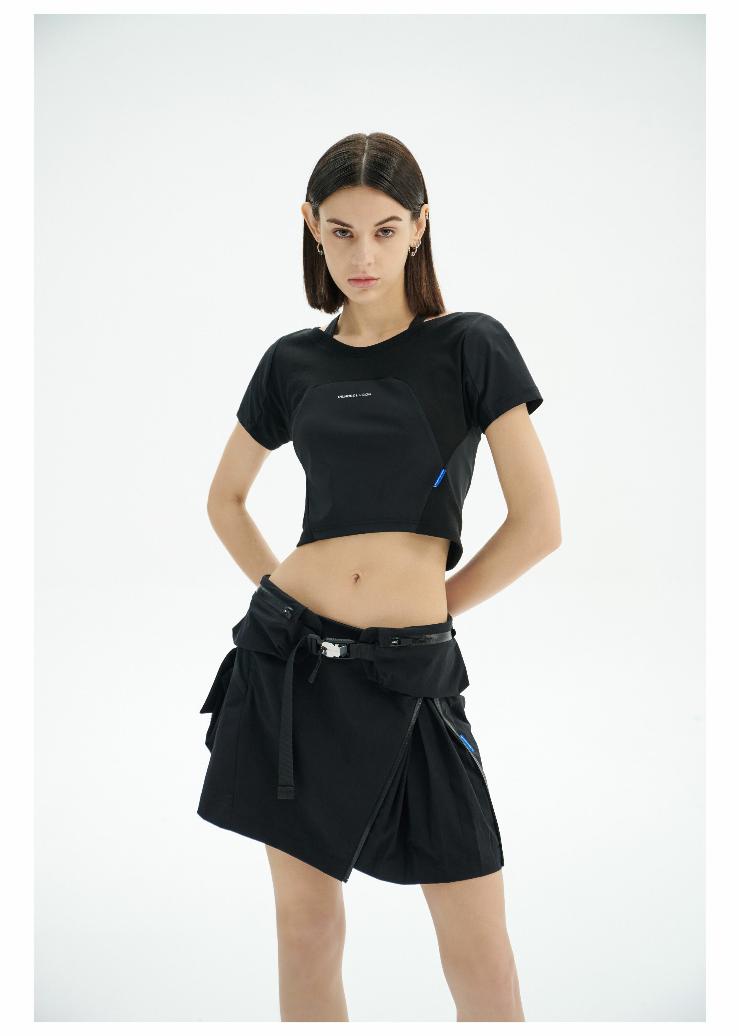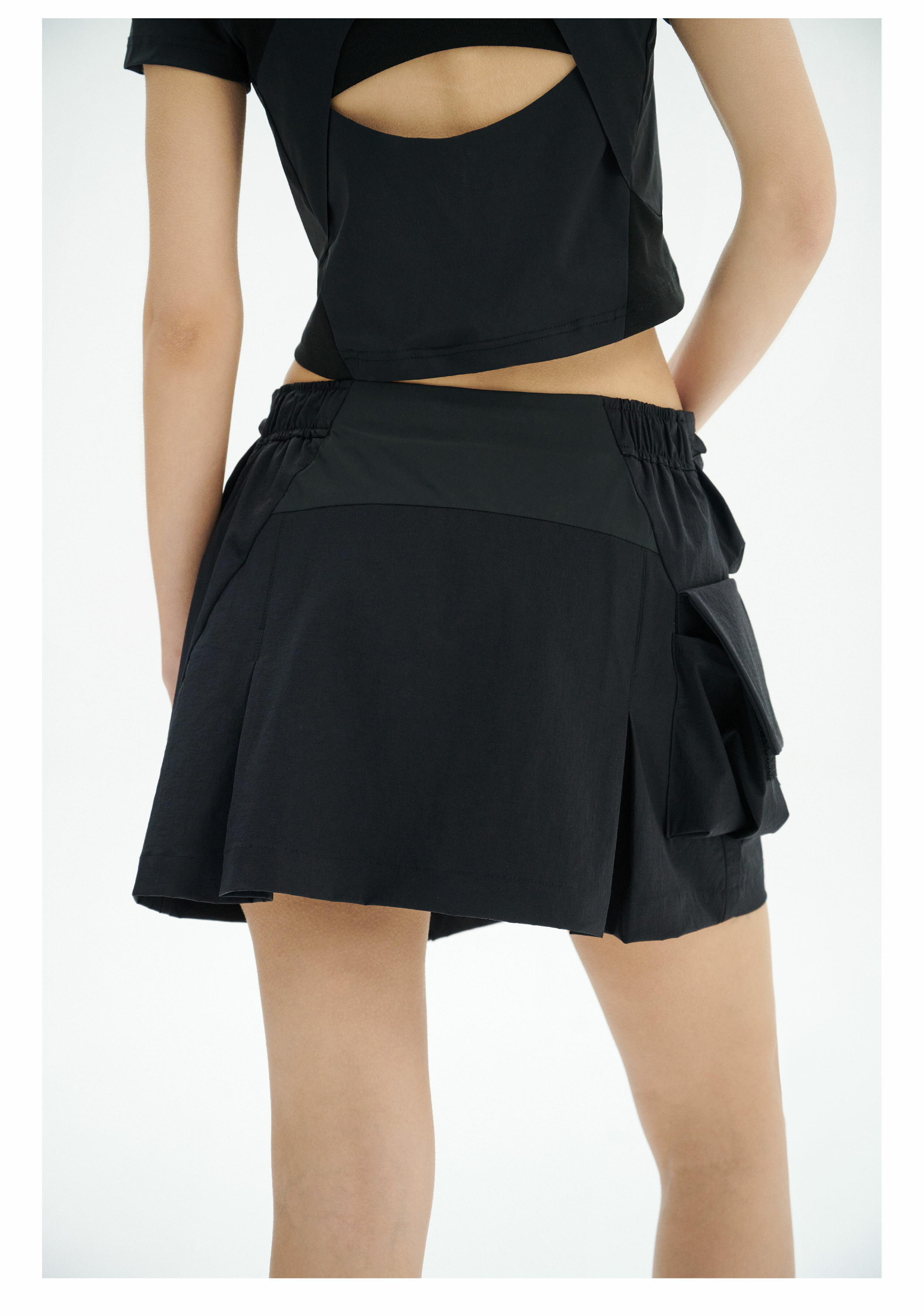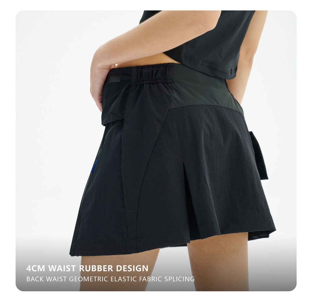 Curved slim line structure pioneering functional short skirt. The width of the hem can be adjusted to accommodate and modify more different body shapes.