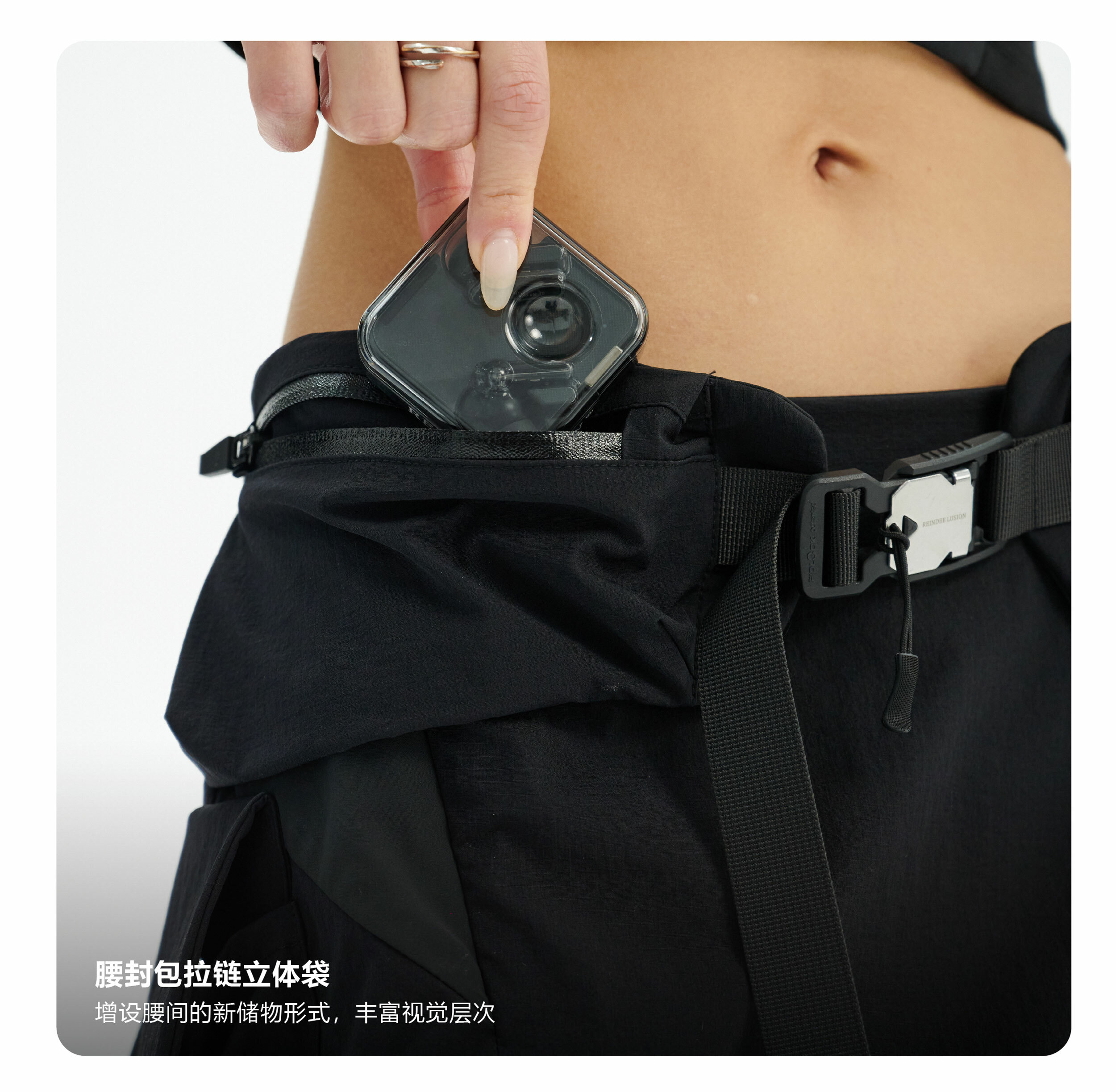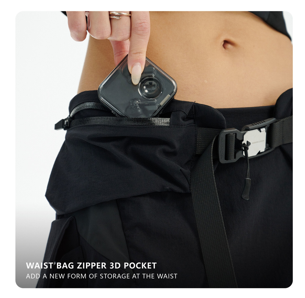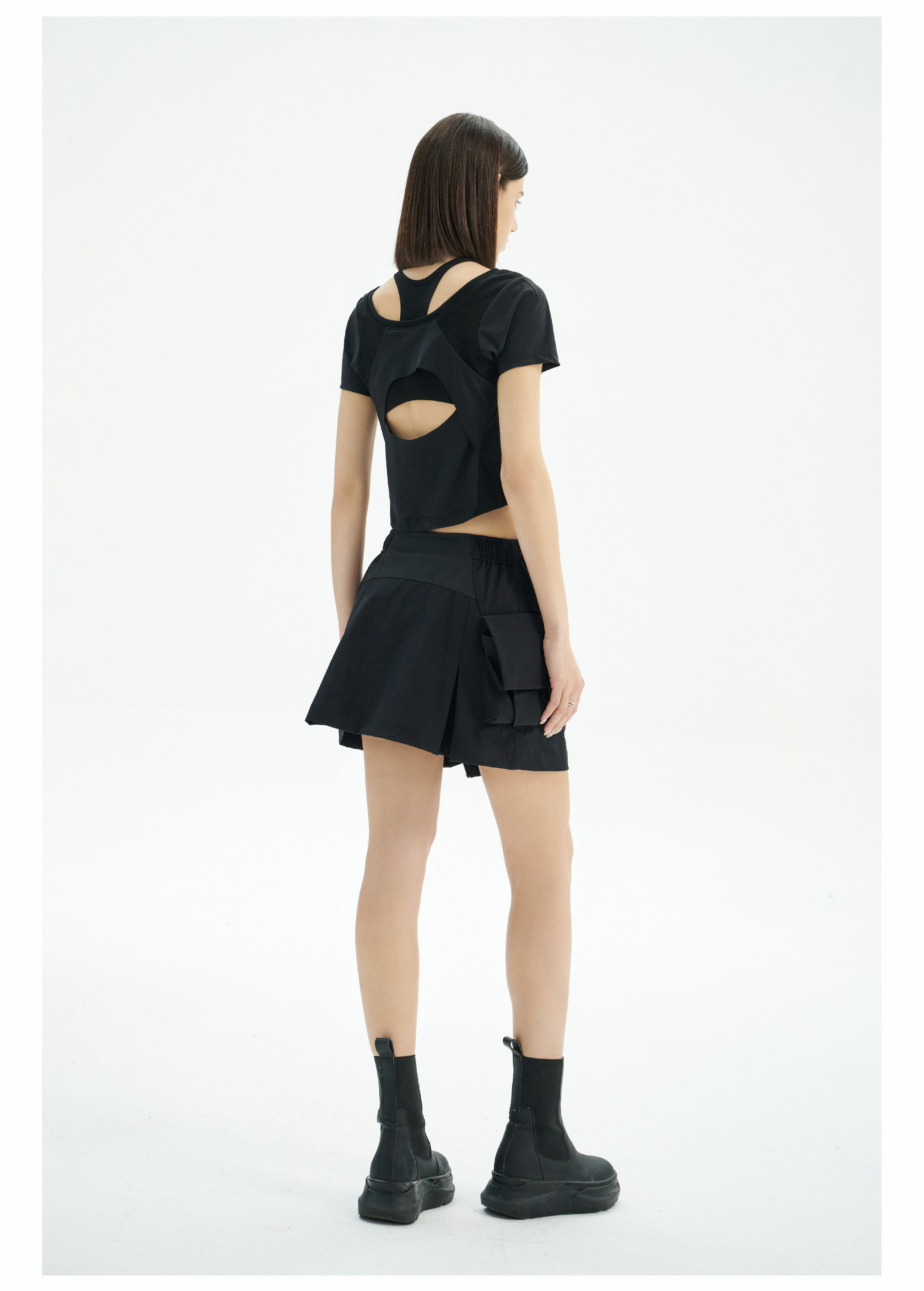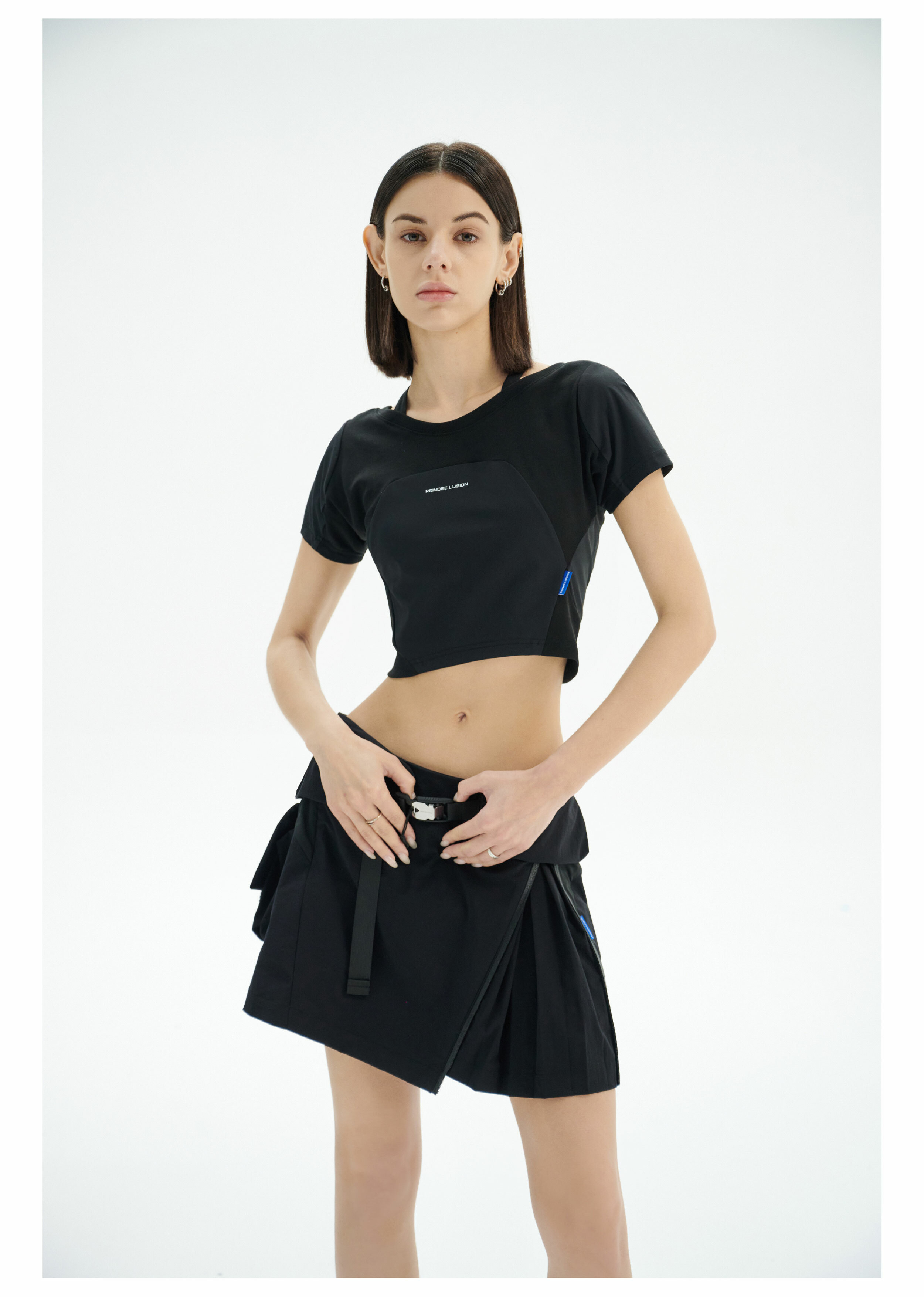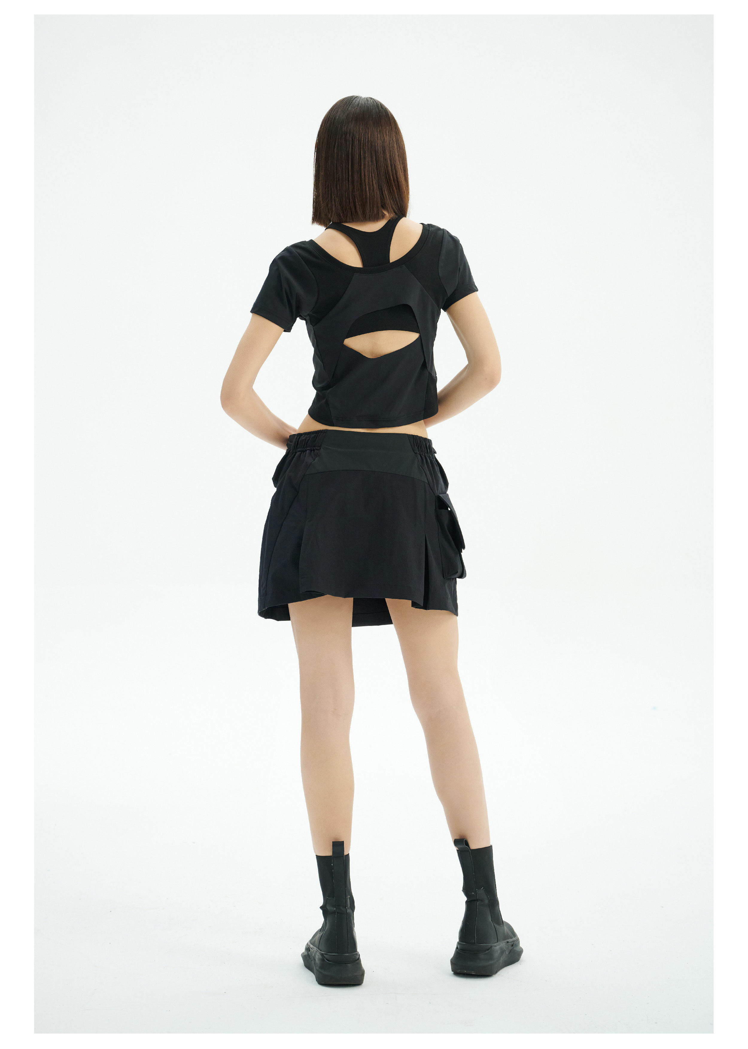 Curved slim line structure pioneering functional short skirt. The width of the hem can be adjusted to accommodate and modify more different body shapes.