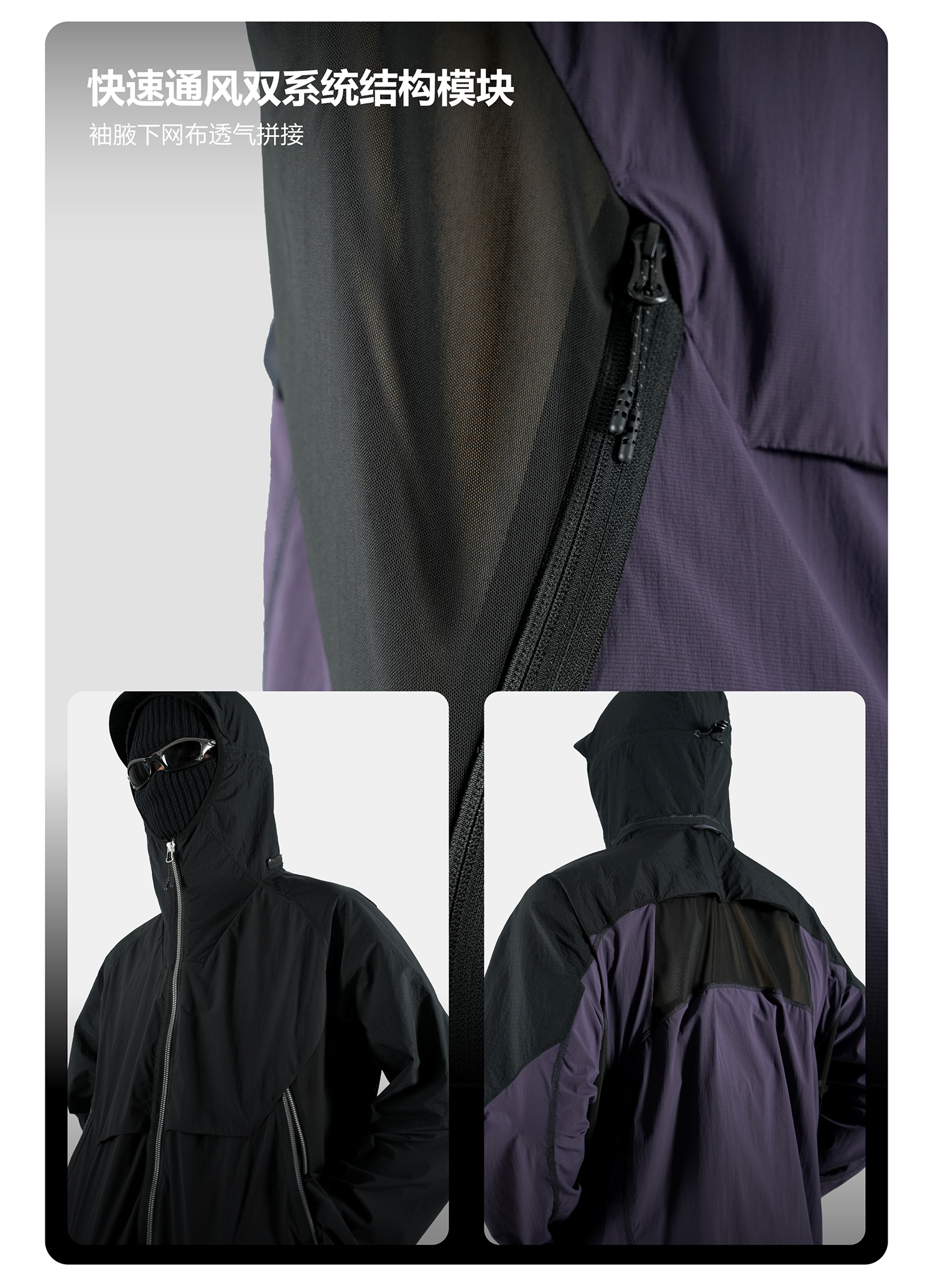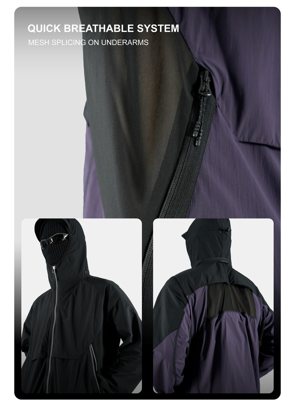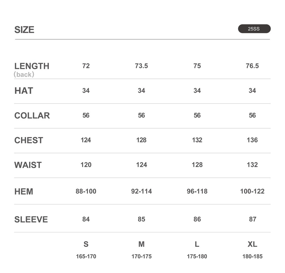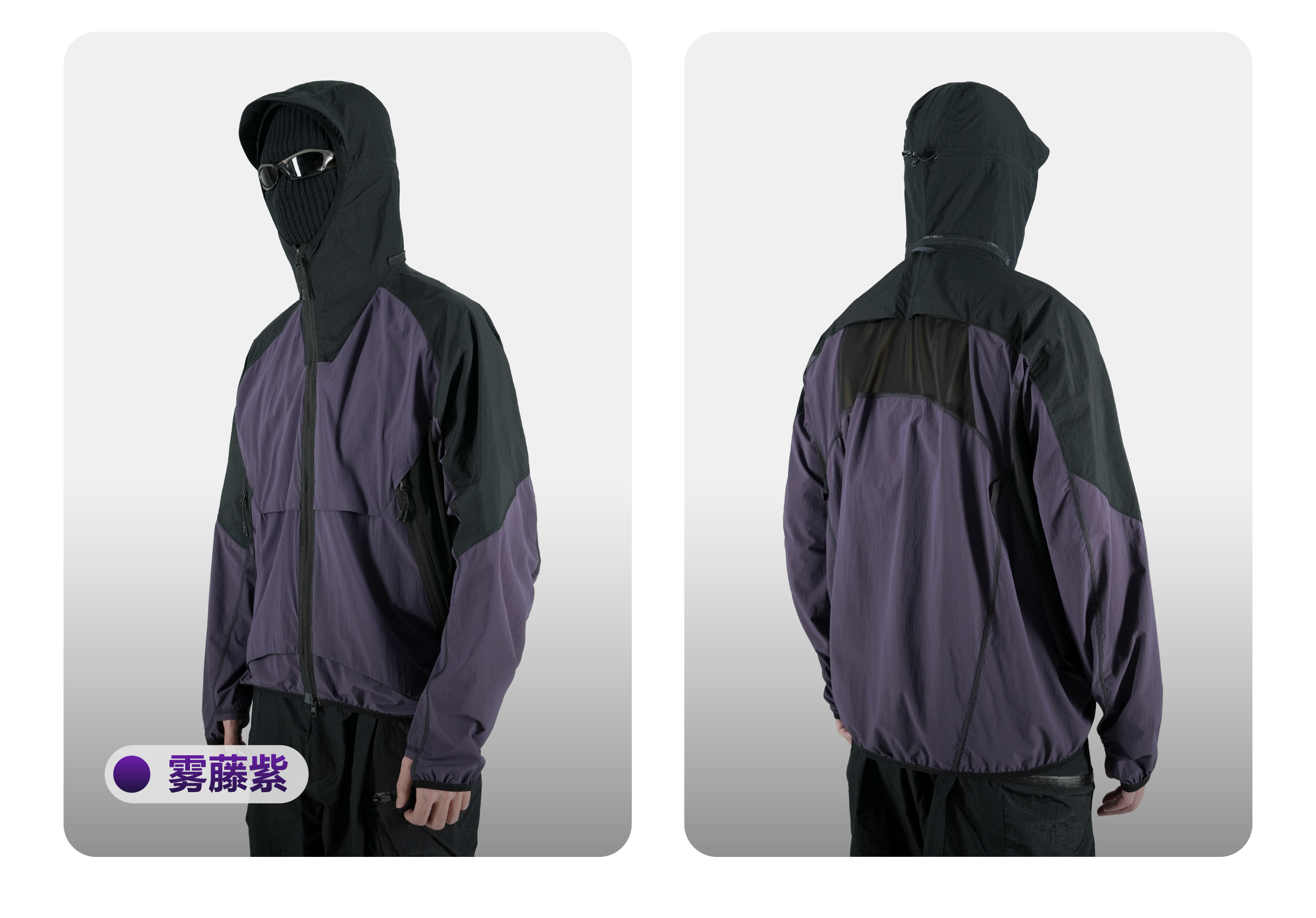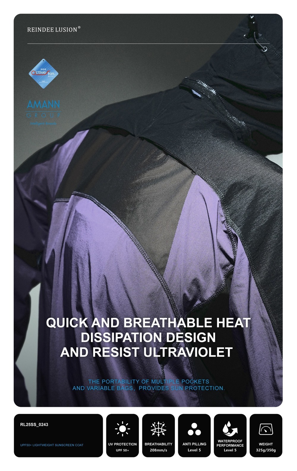 Breathability: 208 mm/s UV protection : UPF 50+ Anti pilling level: 5 Waterproof performance Level:5 Weight:Black:325g , purple:350g | |||||||||