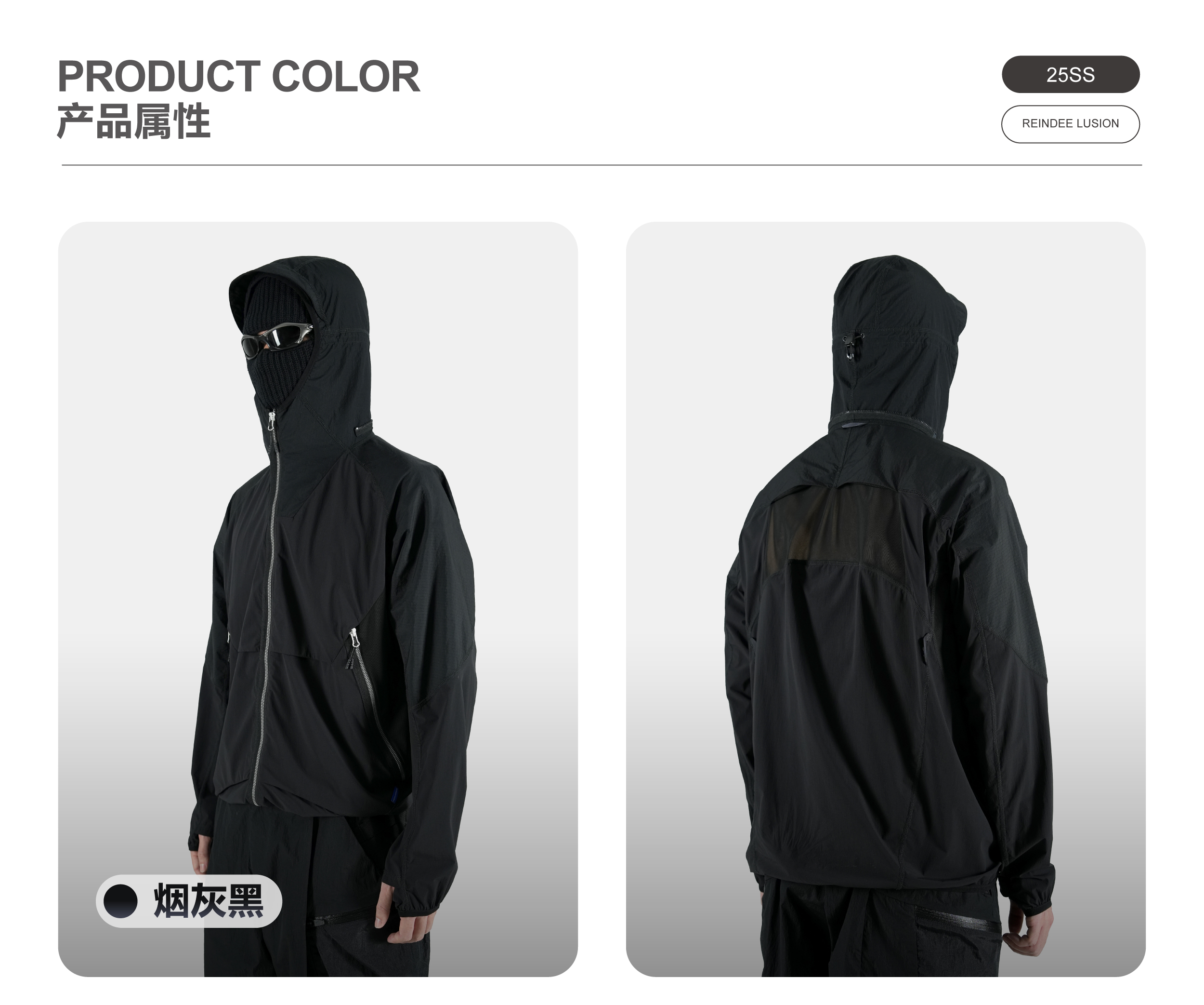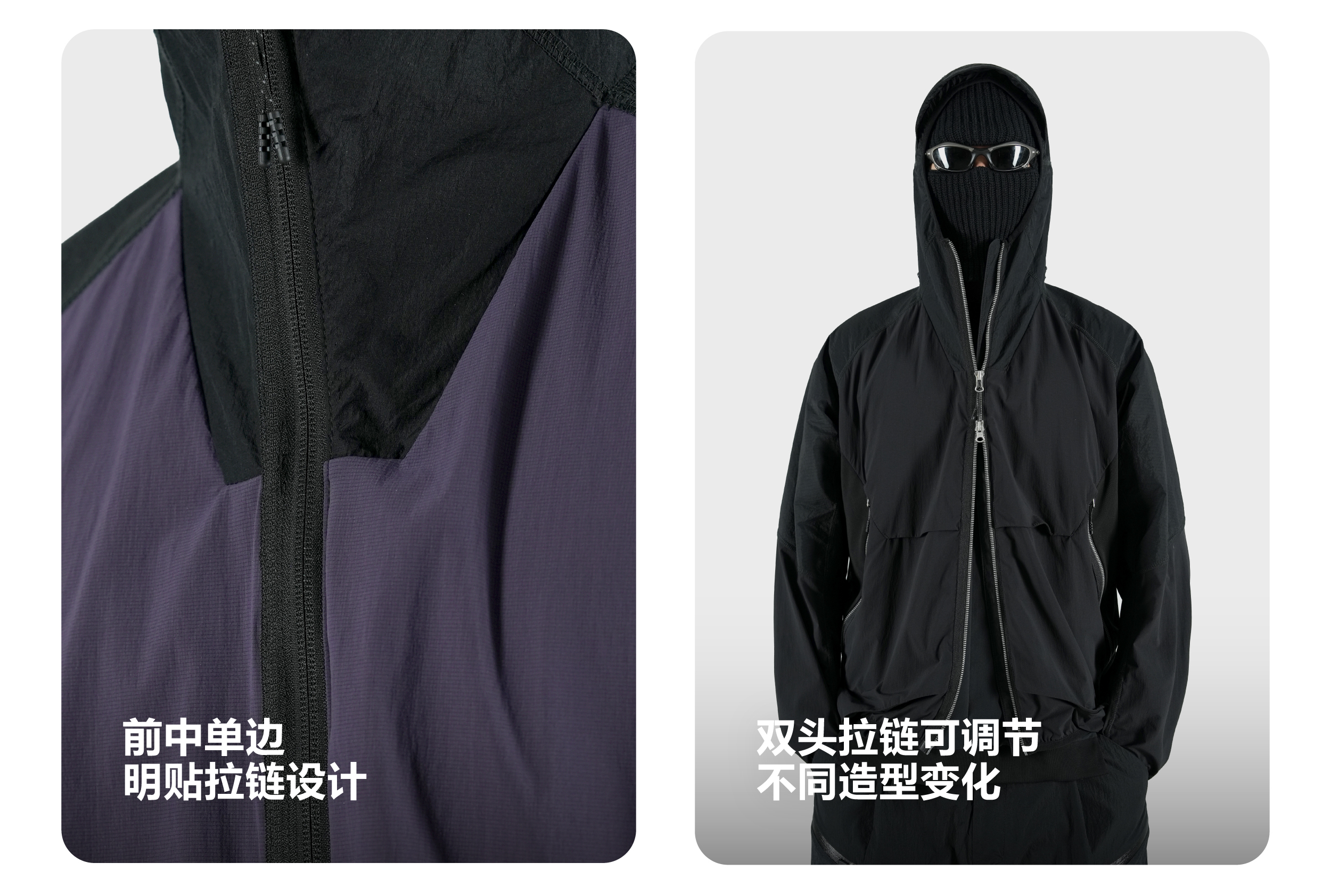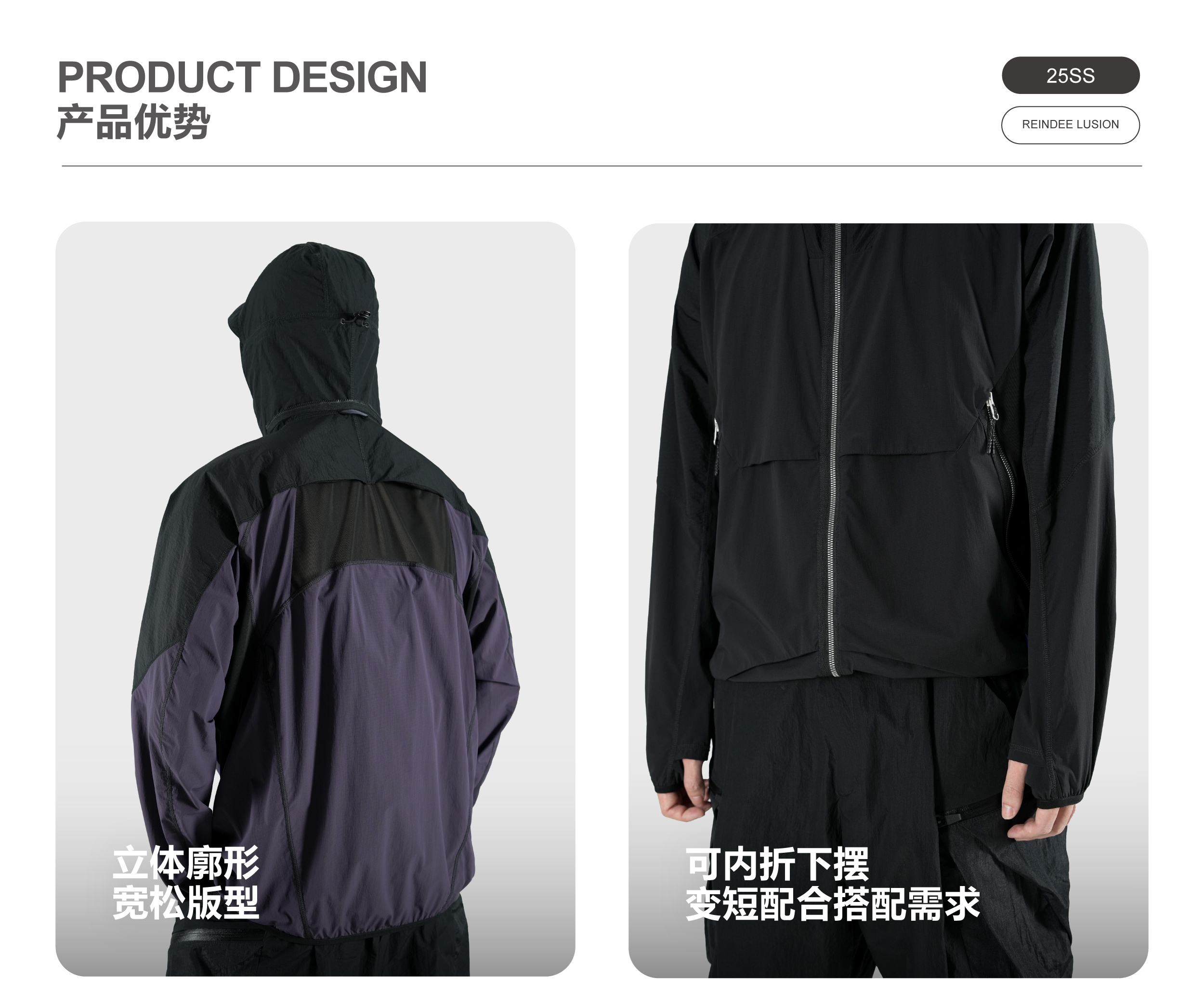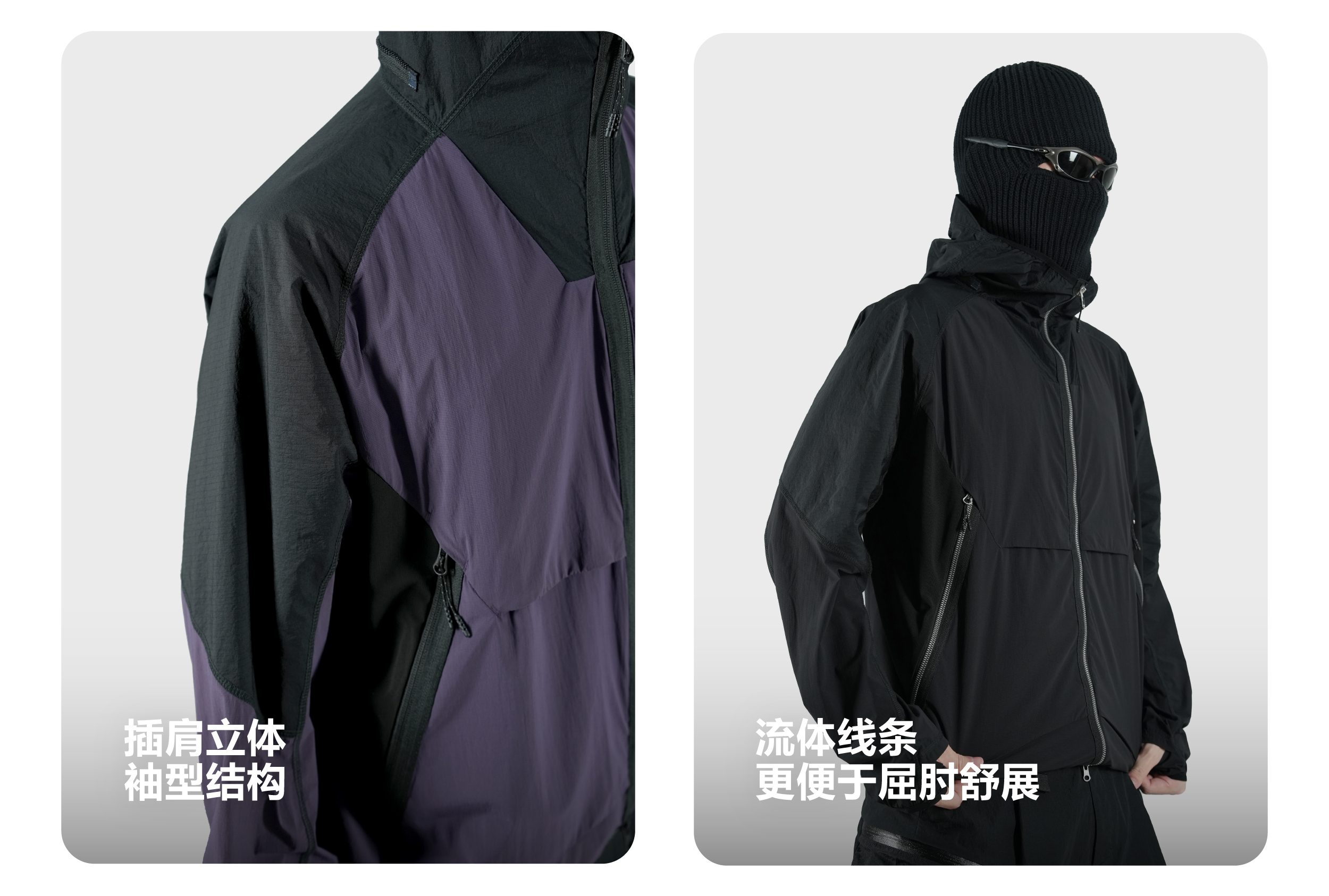 Breathability: 208 mm/s UV protection : UPF 50+ Anti pilling level: 5 Waterproof performance Level:5 Weight:Black:325g , purple:350g | |||||||||