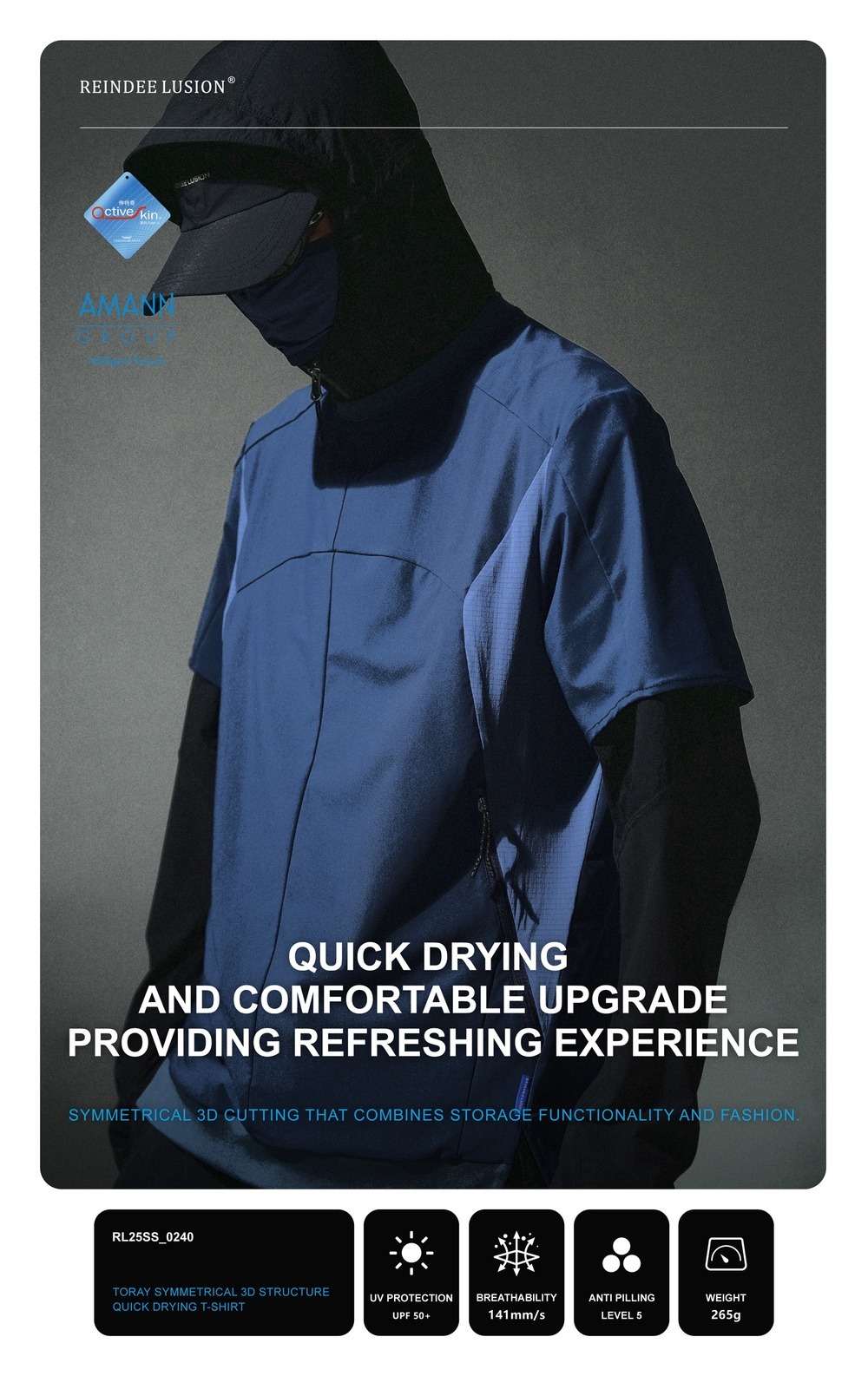 UPF 50+ Breathability: 141 mm/s Anti pilling Level:5 Weight: 265g | |||||||||