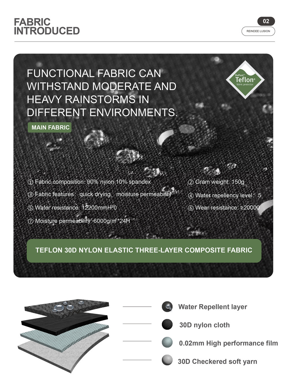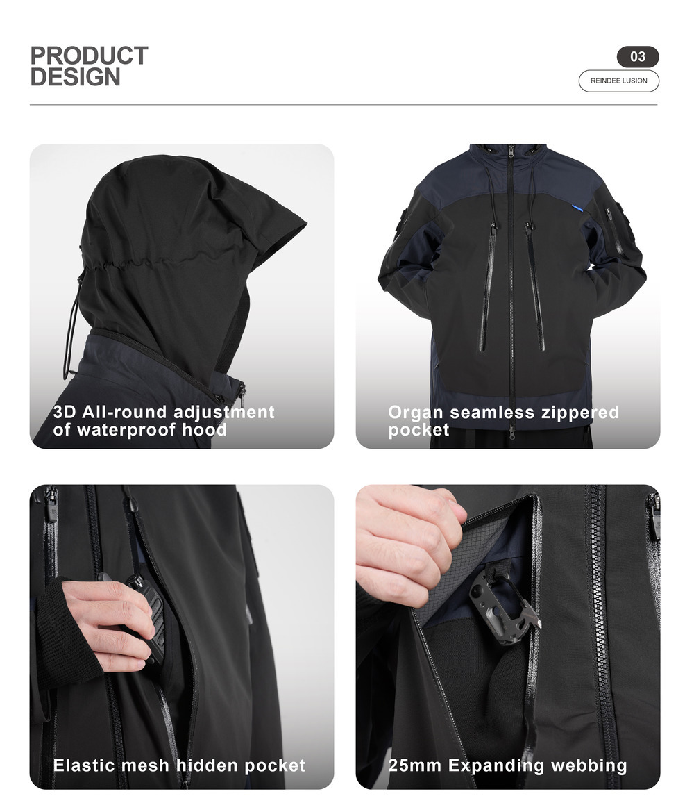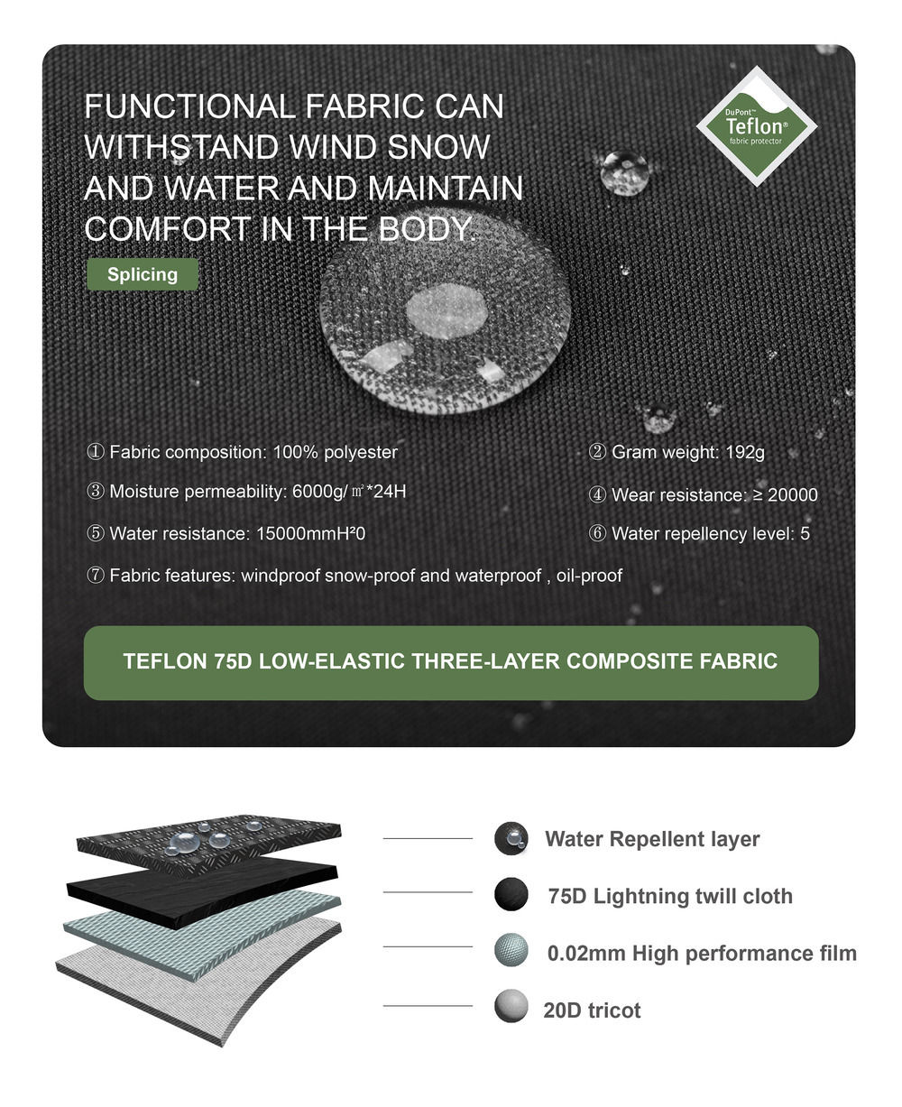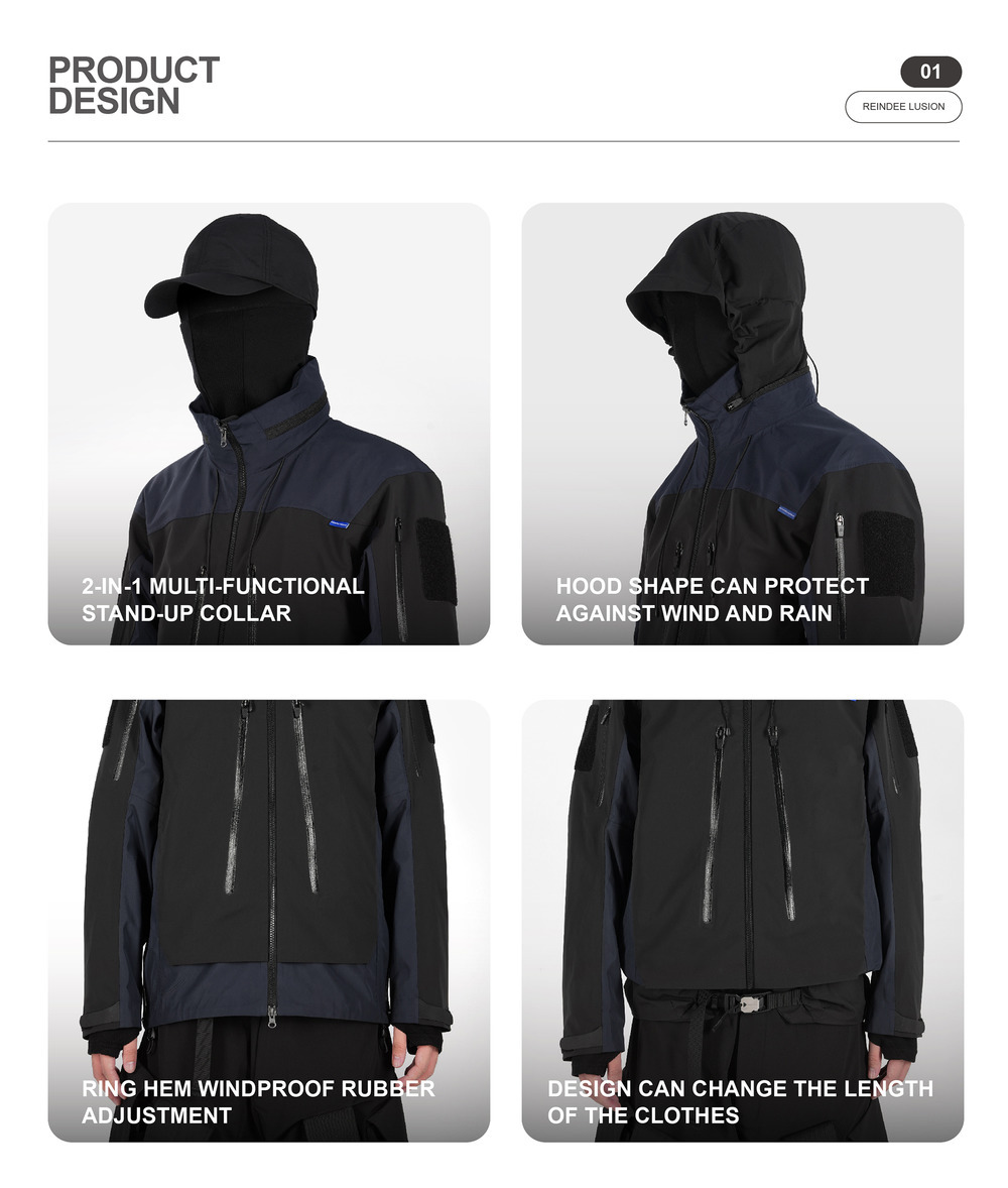 | FUNCTIONAL HARD SHELL TO ENSURE THE TRAVEL NEEDS OF OUTDOOR AND CITY.TEFLON THREE-PROOF TECHNOLOGY CAN WITHSTAND WIND AND RAIN.2-IN-1 MULTI-FUNCTIONAL STAND-UP COLLAR.HOOD SHAPE CAN PROTECT AGAINST WIND AND RAIN.FUNCTIONAL FABRIC CAN WITHSTAND MODERATE AND HEAVY RAINSTORMS IN DIFFERENT ENVIRONMENTS.FUNCTIONAL FABRIC CAN WITHSTAND WIND SNOW AND WATER AND MAINTAIN COMFORT IN THE BODY.