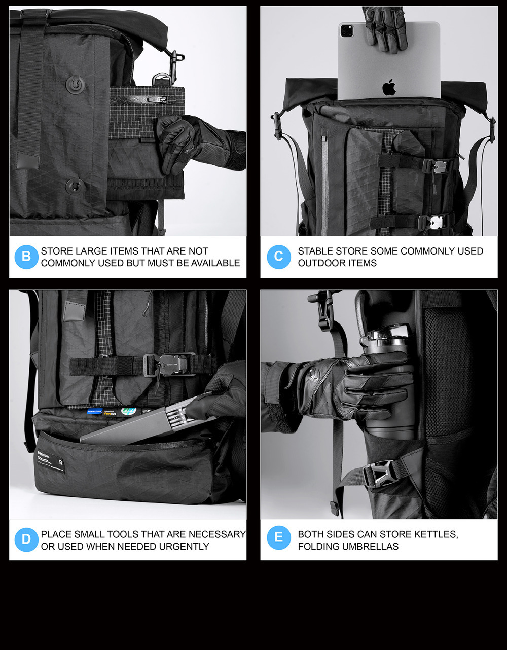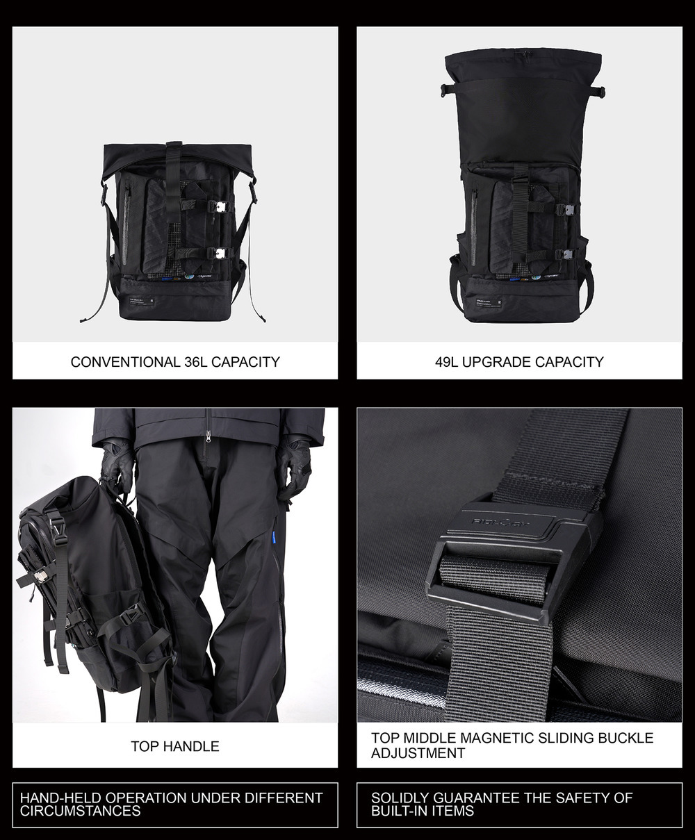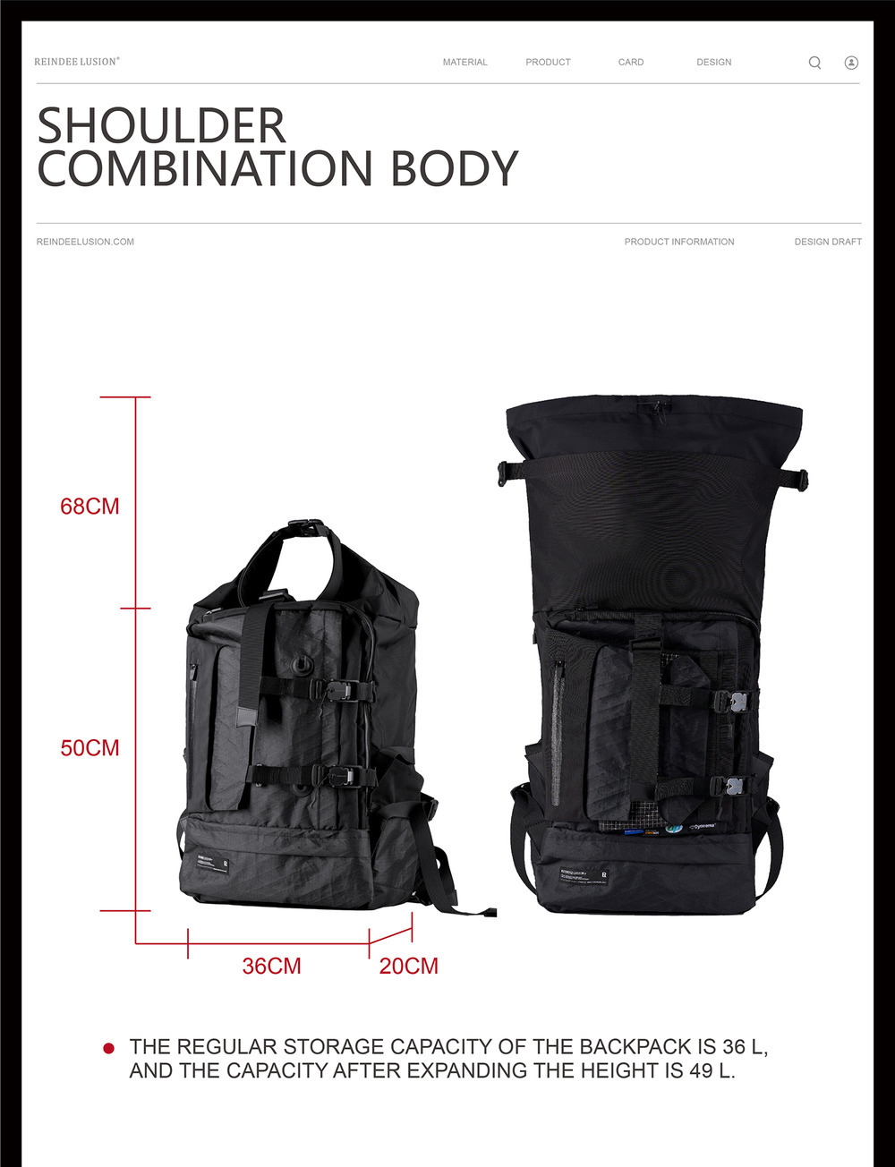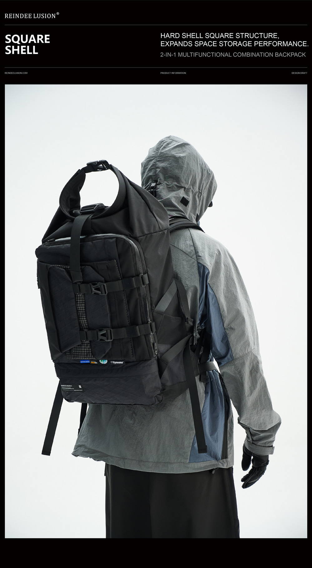 HARD SHELL SQUARE STRUCTURE, EXPANDS SPACE STORAGE PERFORMANCE. 2-IN-1 MULTIFUNCTIONAL COMBINATION BACKPACK.