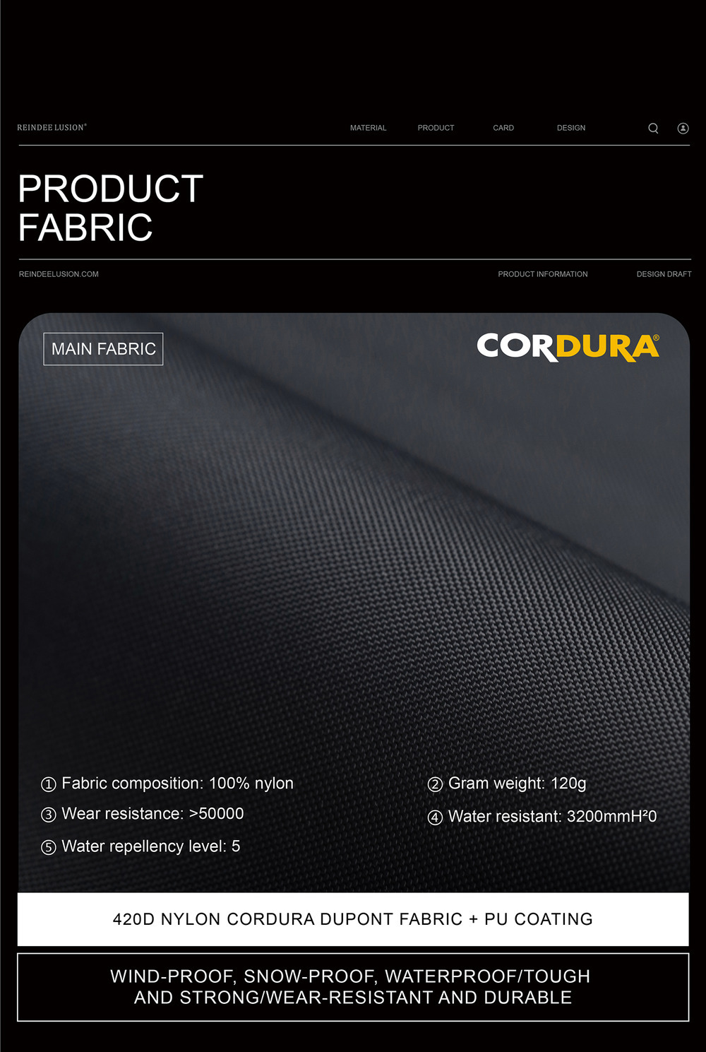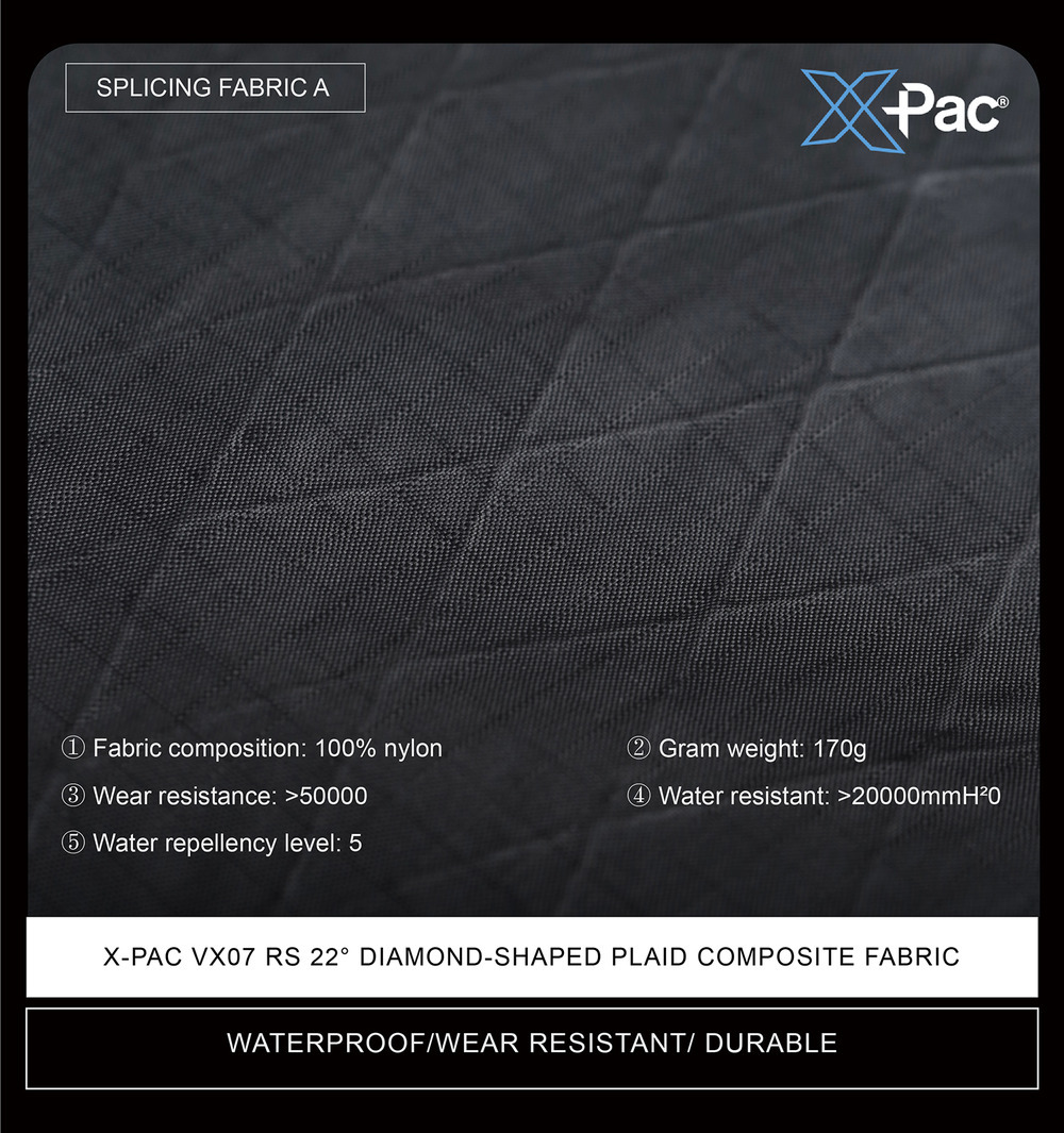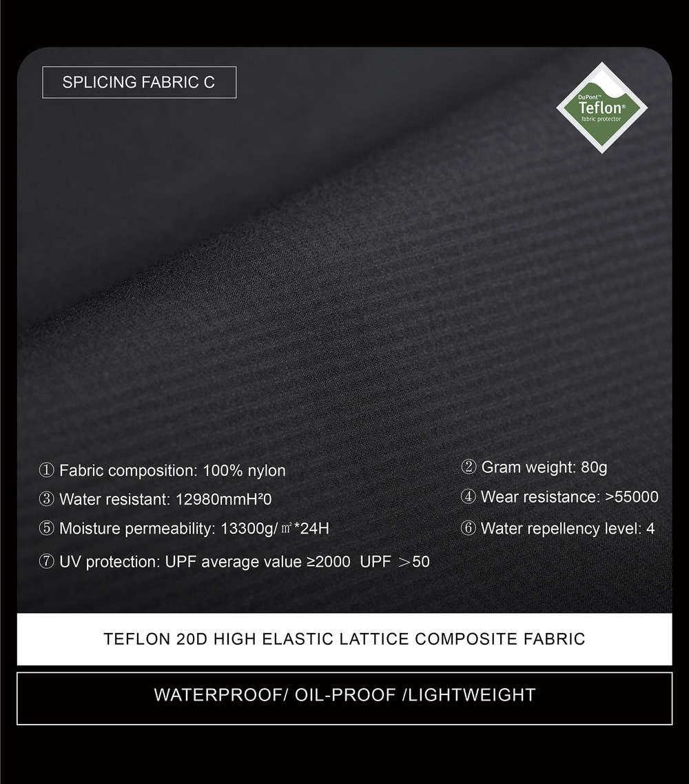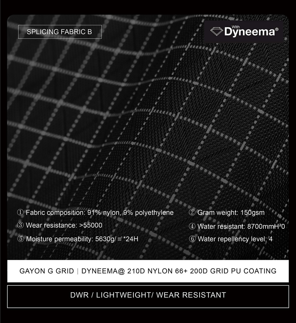 Main fabric:100% NYLON Splicing A:100% NYLON Splicing B:91% NYLON, 9% POLYETHYLENE Splicing C:100% NYLON |
