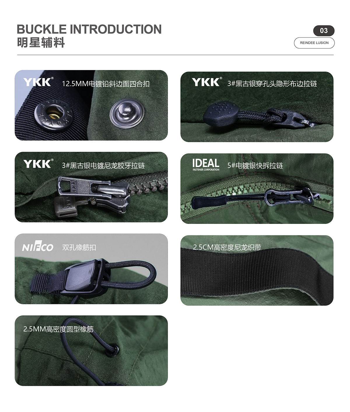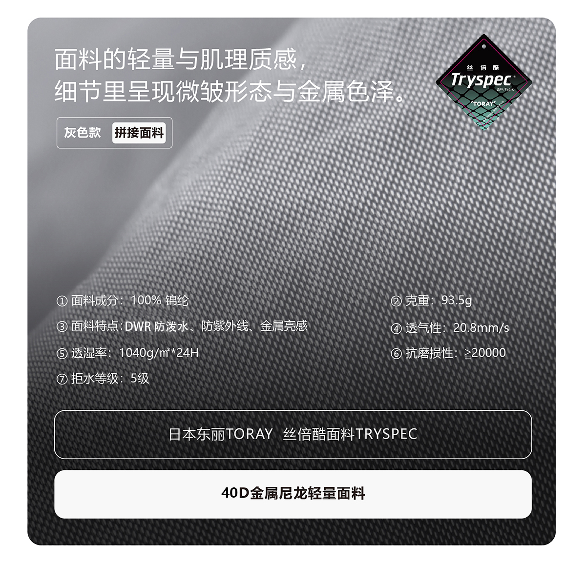 | The main fabric:40.5%nylon,59.5%polyester Stitching A:100%nylon Stitching B:100%polyester