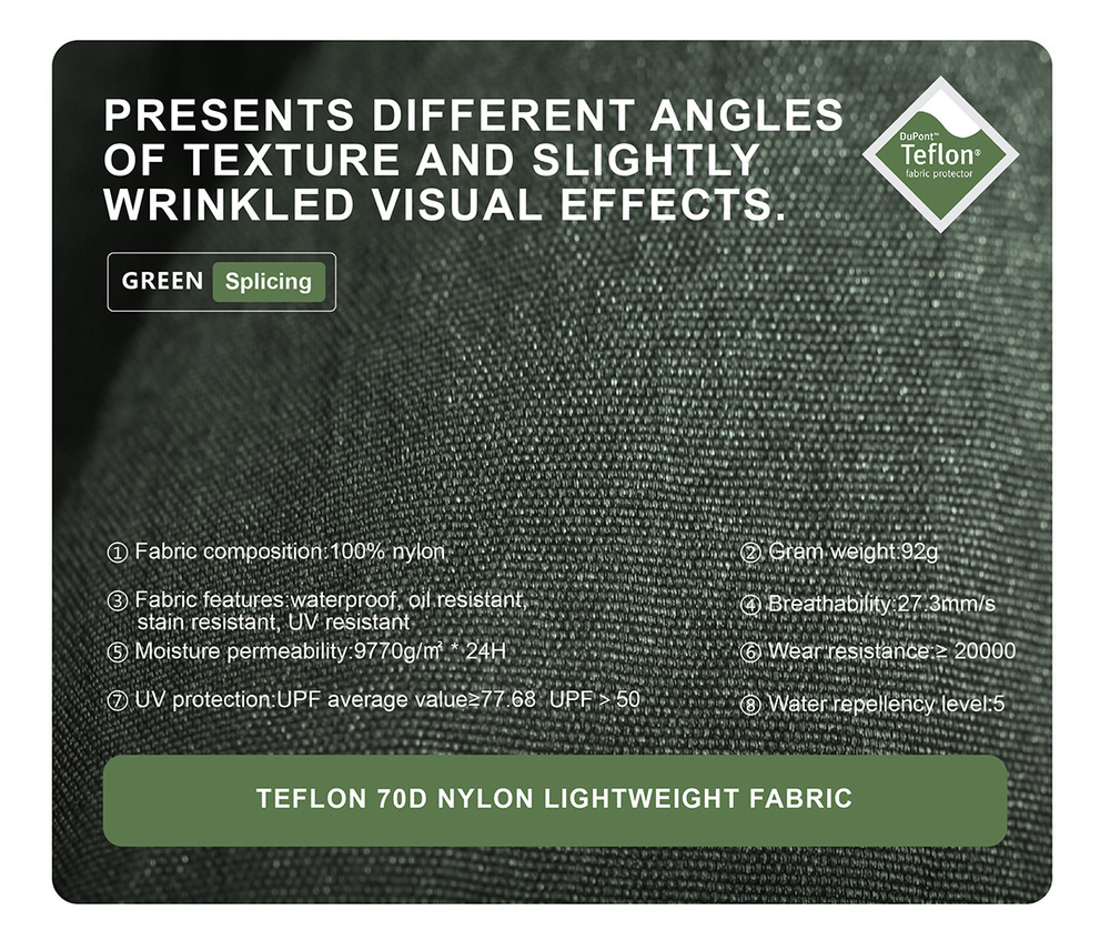 | Lightweight and colorful UV protection fabric. 360 ° resistance to outdoor ultraviolet rays to reduce stuffiness. Breathable fabric keeps summer heat dissipation comfortable. | |||||||||