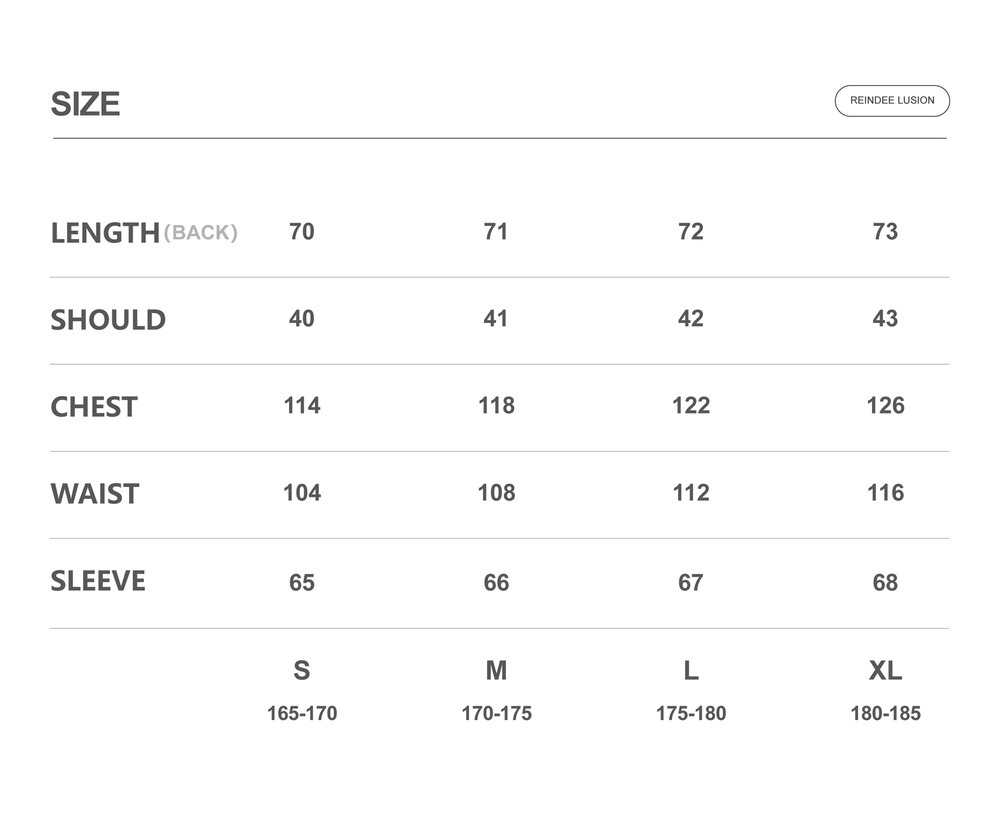 | Chest | 114 | 118 | 122 | 126 | |