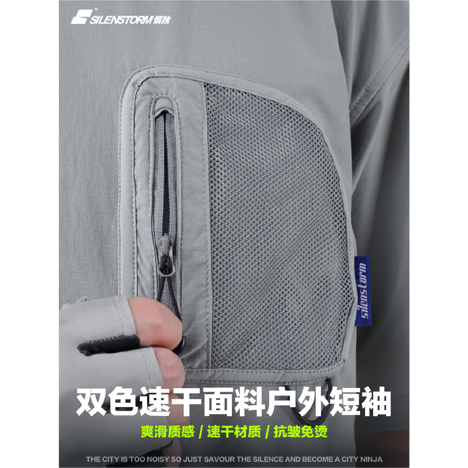 SILENSTORM 日系圓領速乾戶外口袋短袖