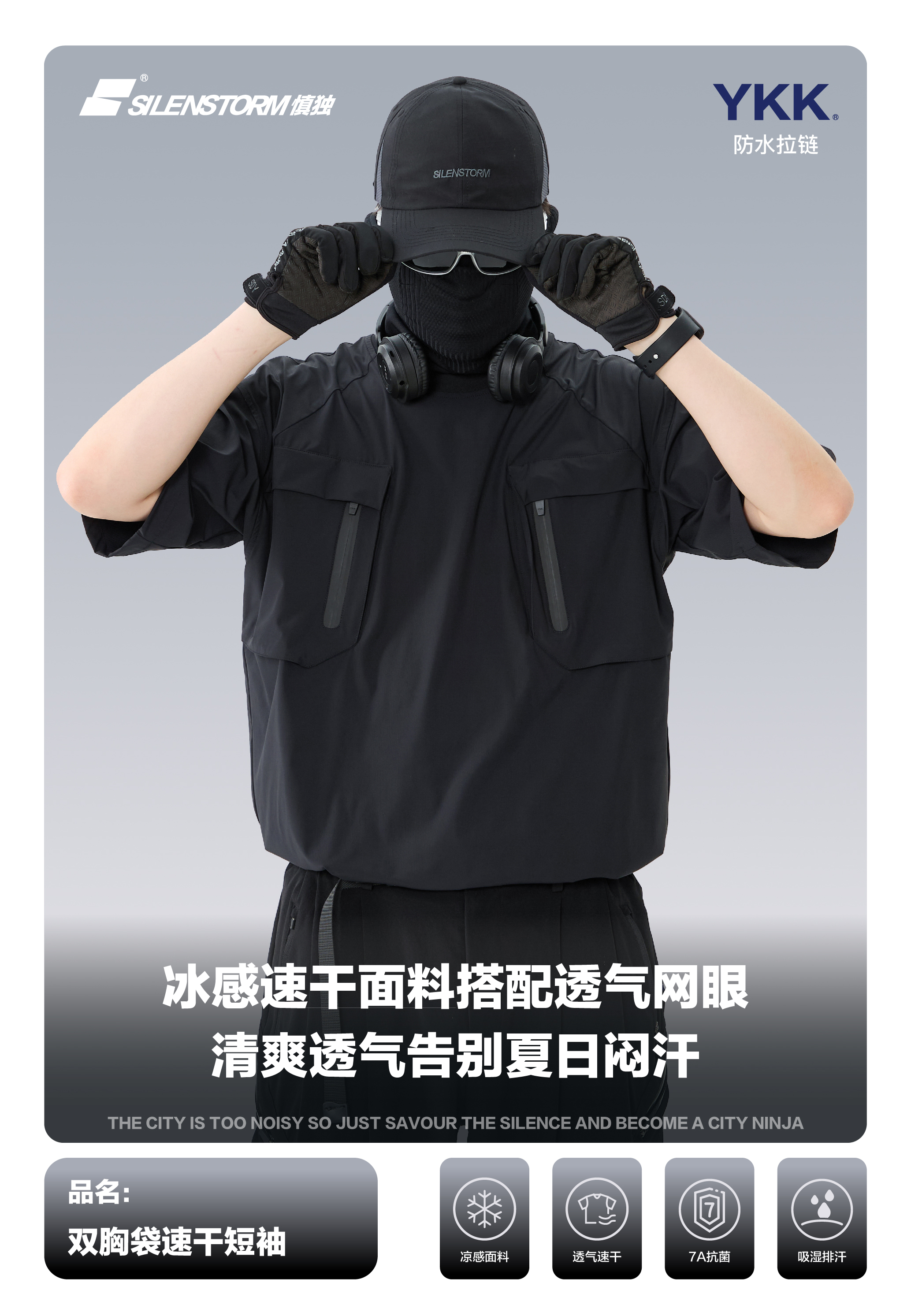 SILENSTORM 雙口袋工裝機能拼接速乾短袖