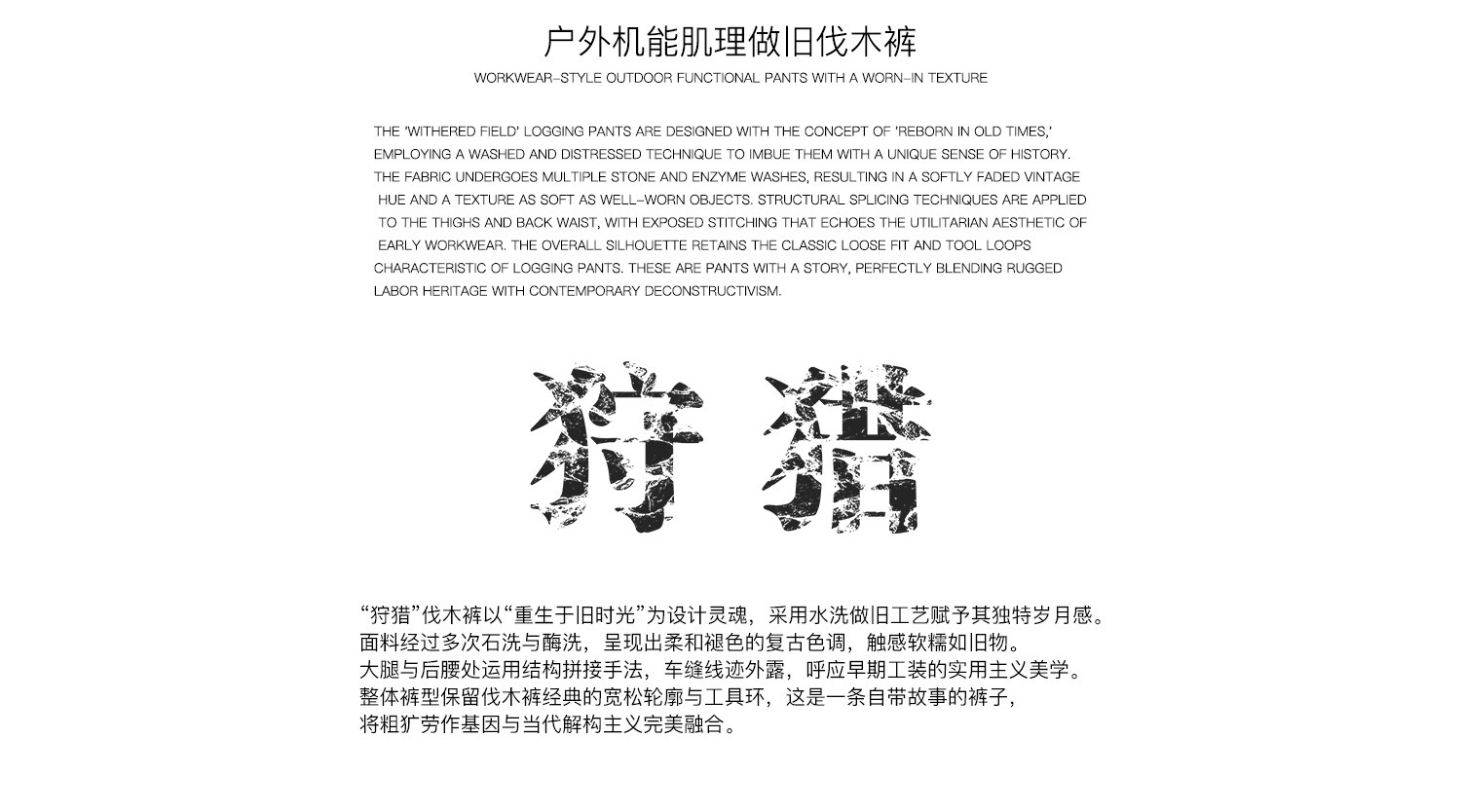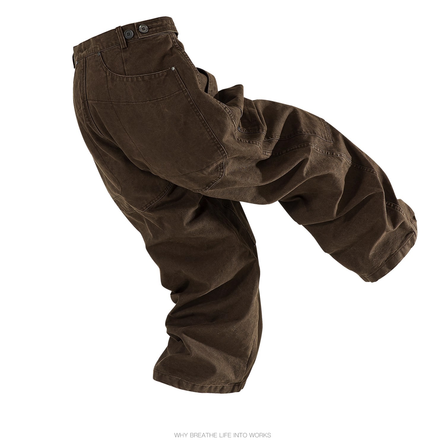 WHYWORKS 25AW [狩獵] 機能工裝伐木褲重磅做舊廢土闊腿寬鬆長褲