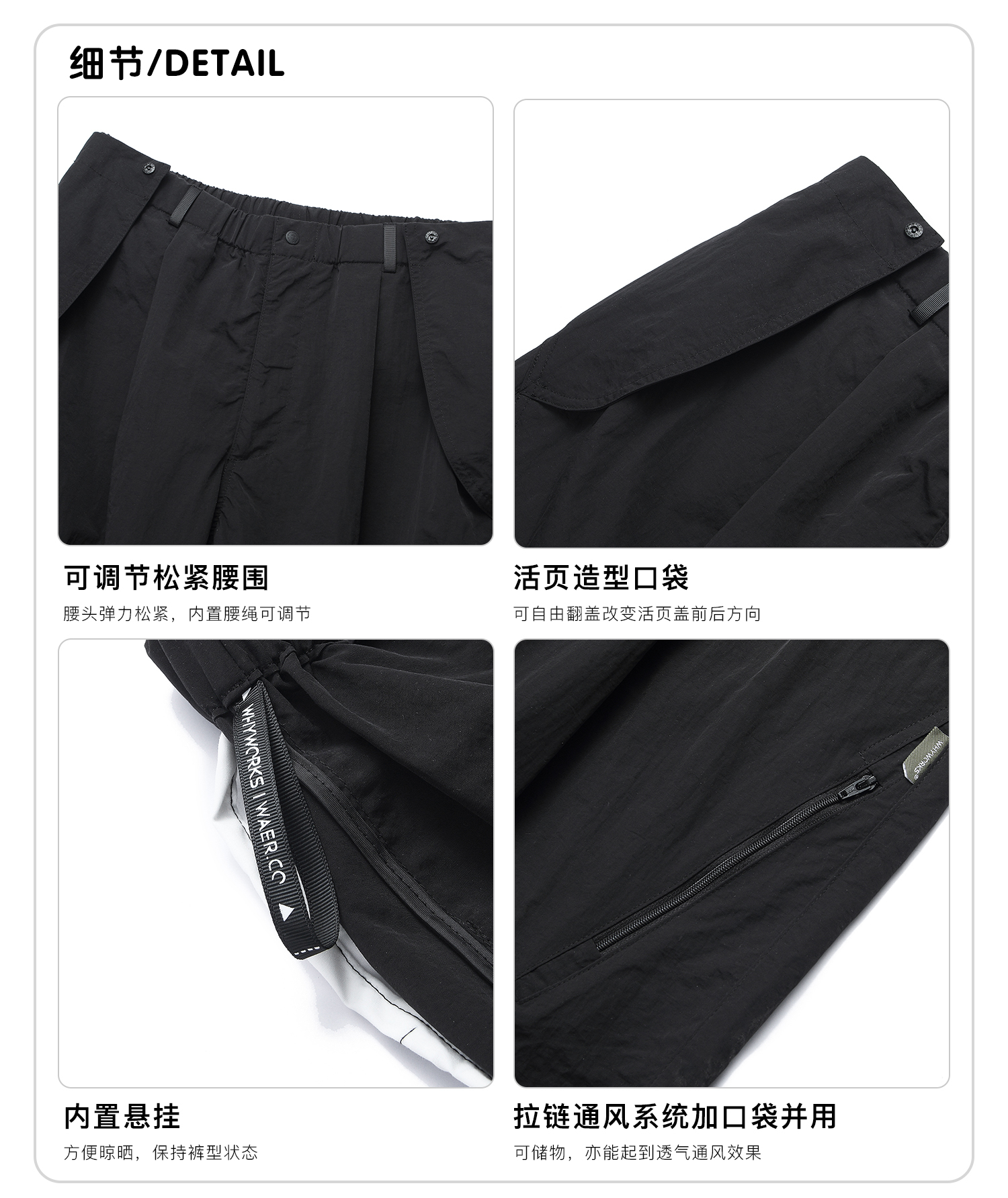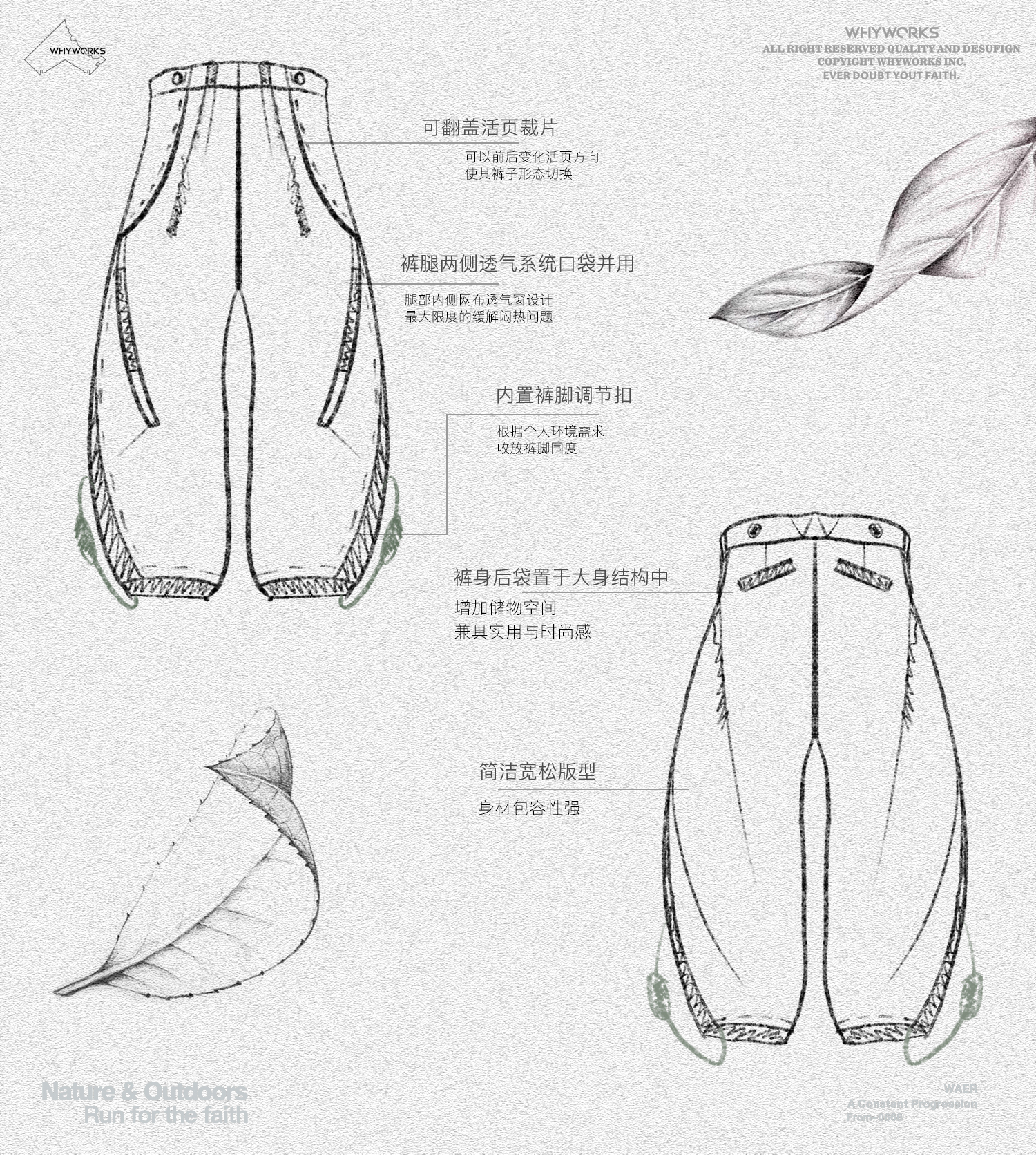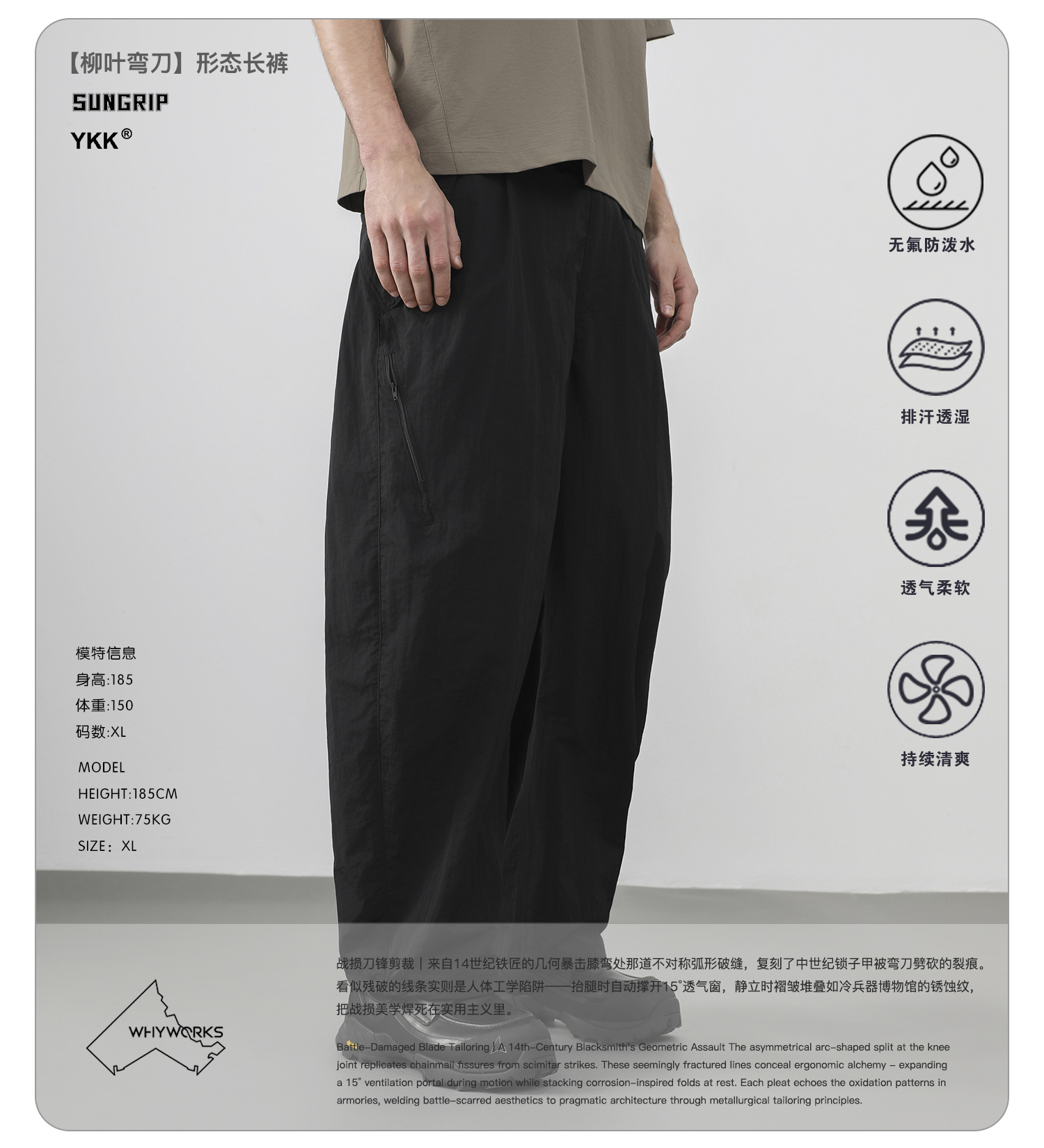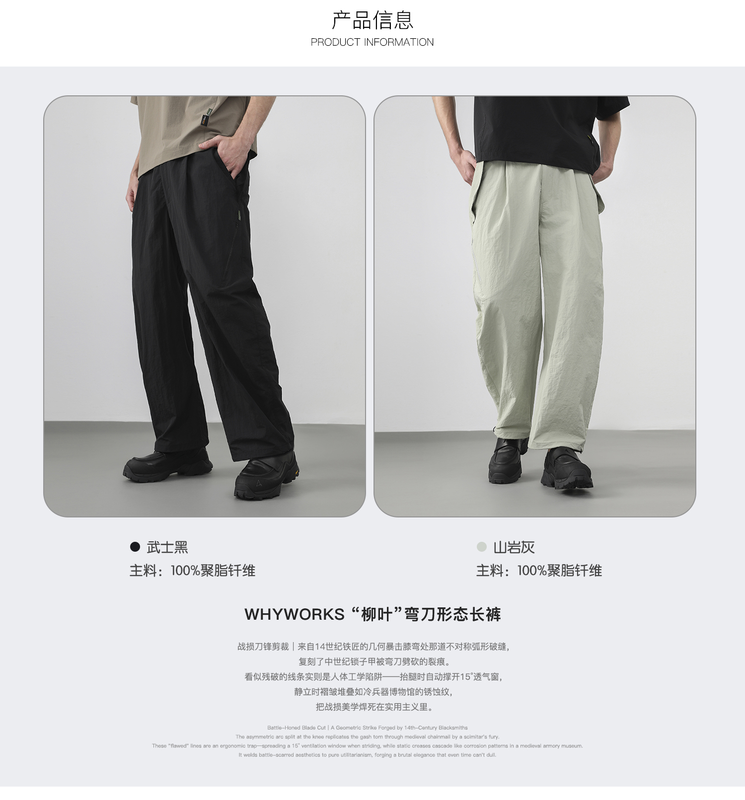 WHYWORKS 25SS 「柳葉」彎刀褲機能活頁廓形態戶外透氣速乾長褲