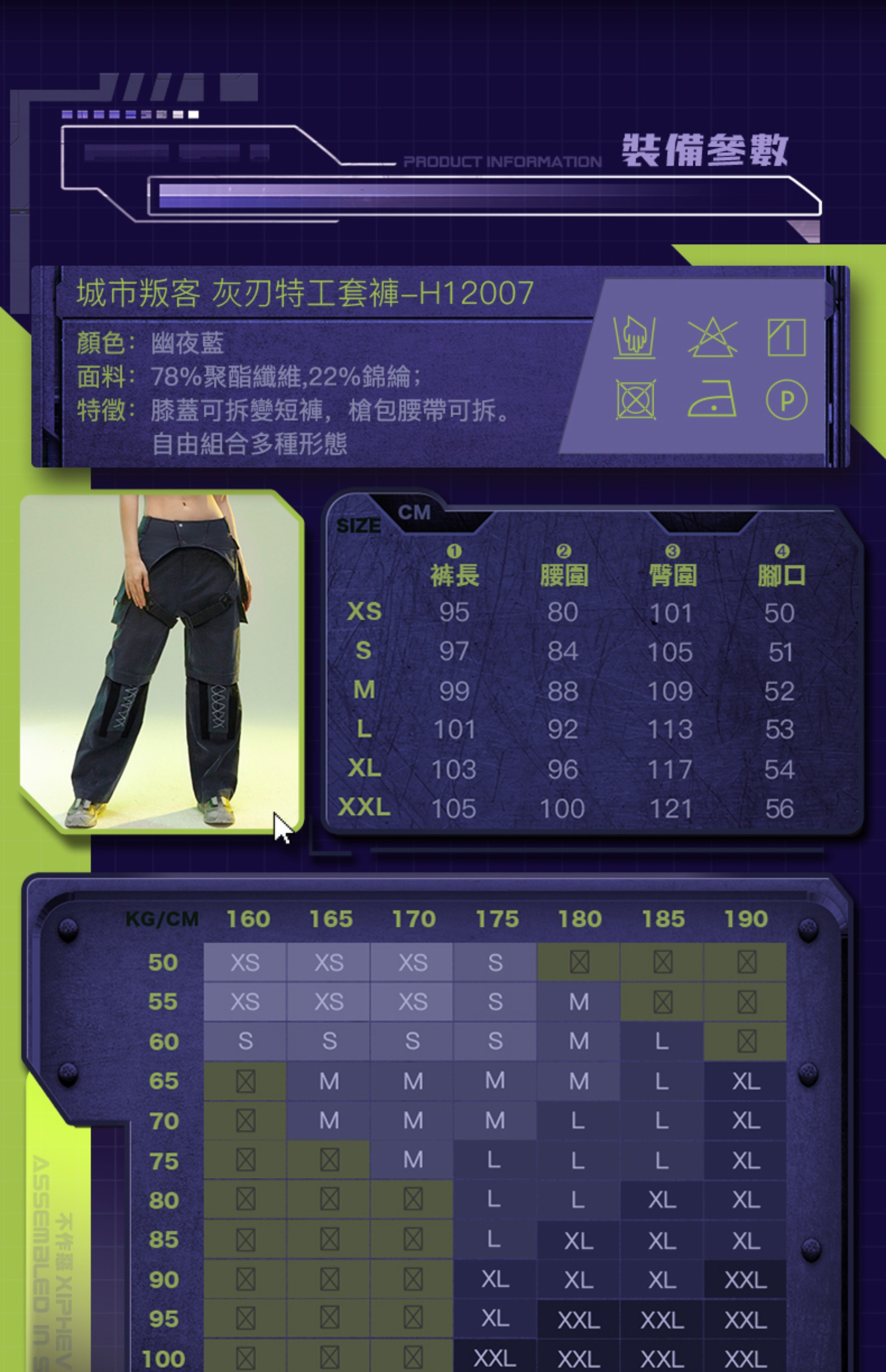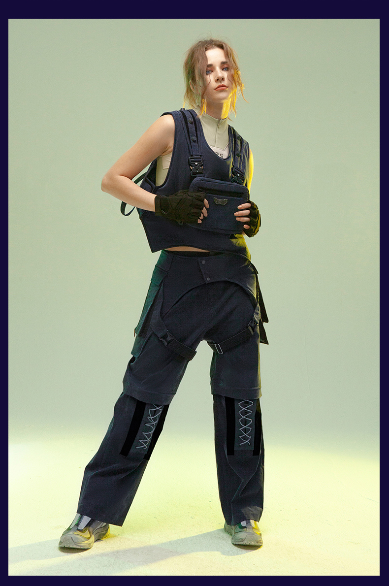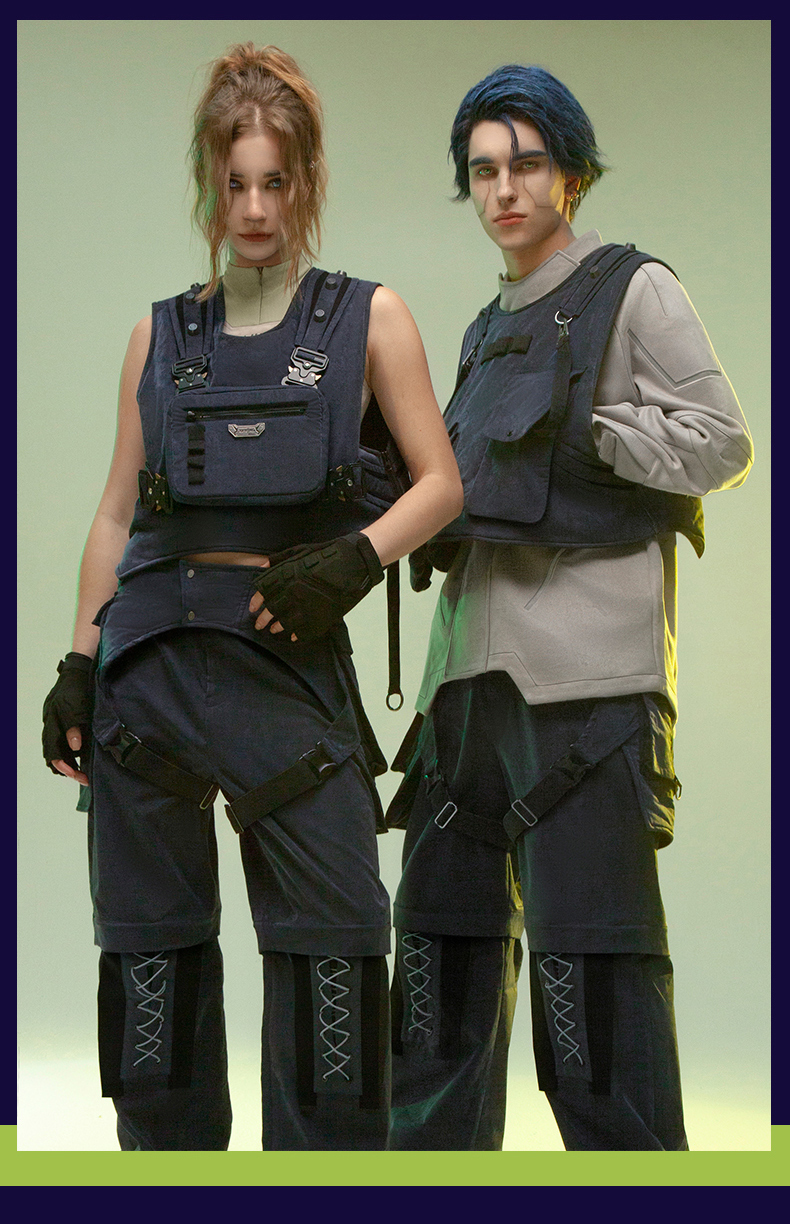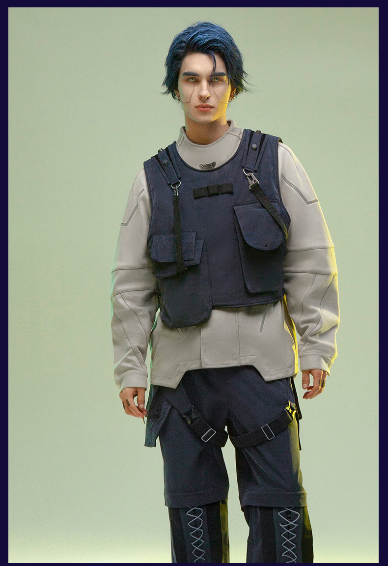 不作惡「灰刃特務套褲-兩件套」賽博龐克直筒輪廓可拆卸褲管