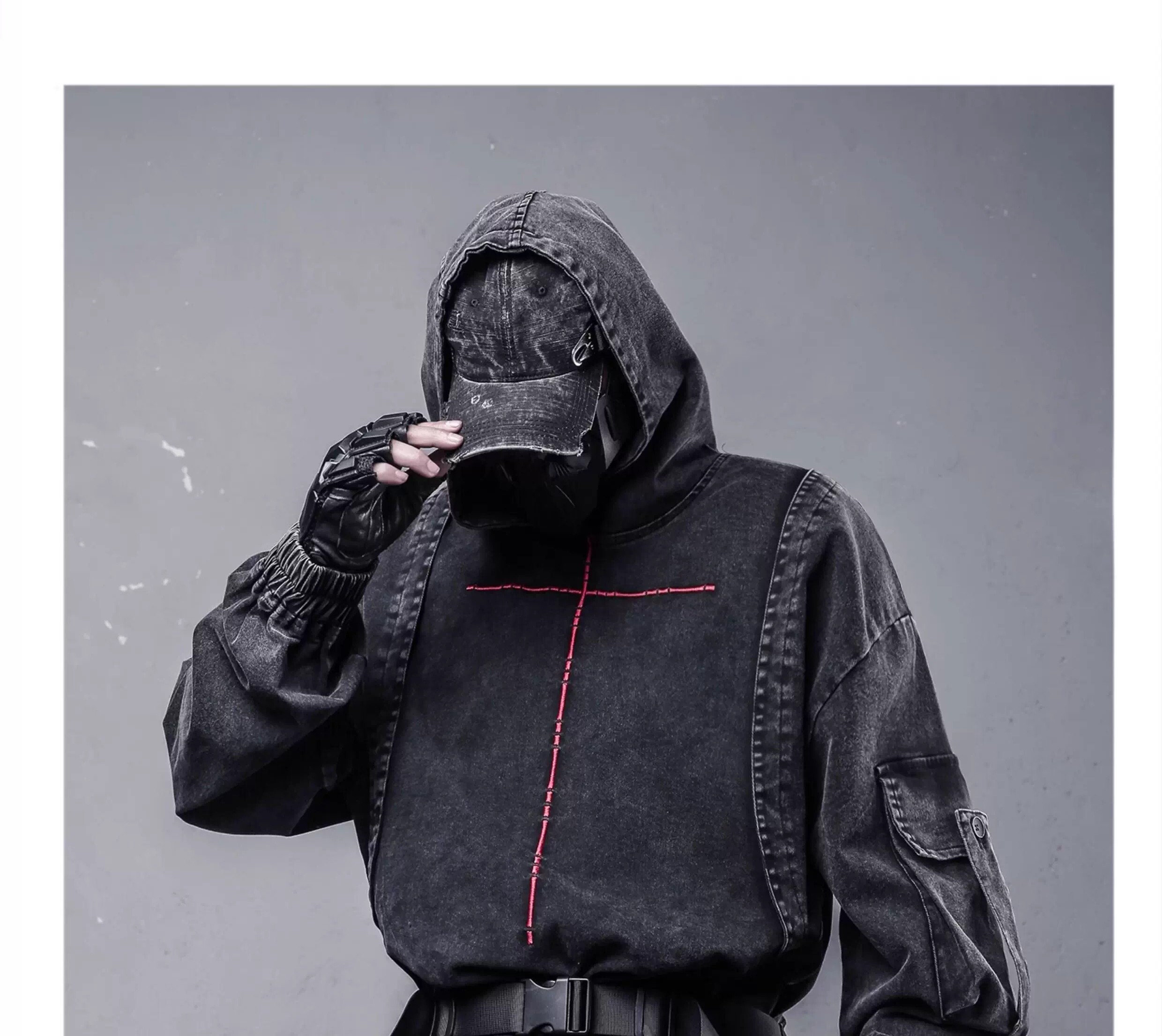 𝙏𝙀𝘾𝙃𝙒𝙀𝘼𝙍 廢土洗水做舊解構連帽衛衣